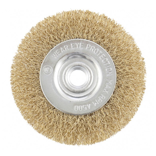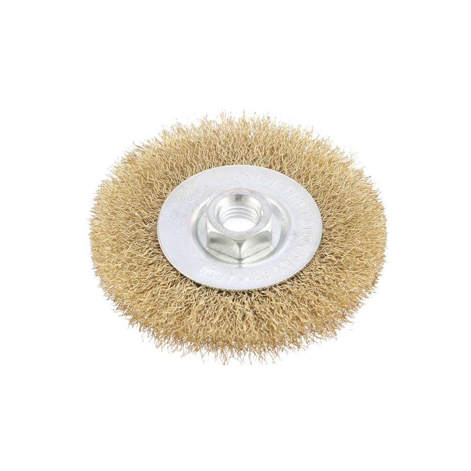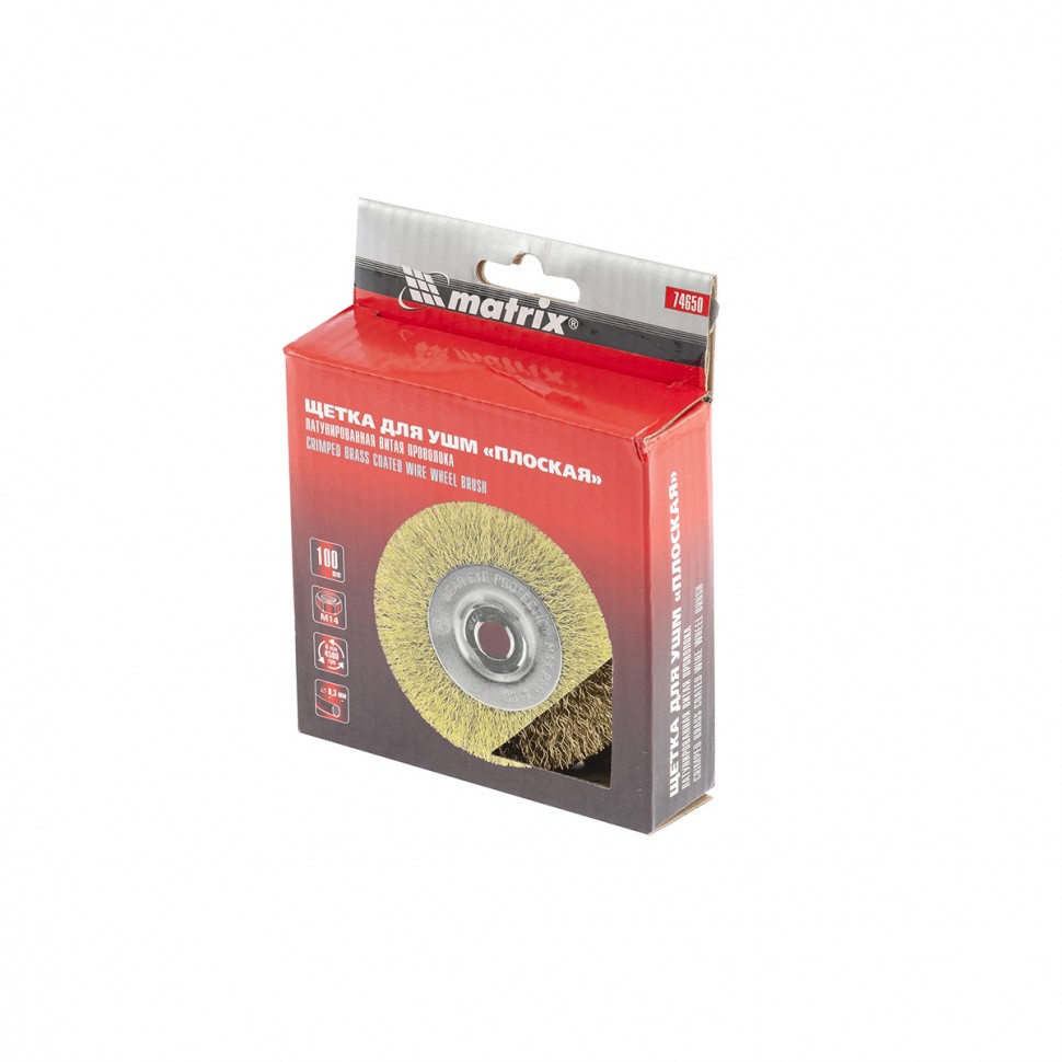Плоская щетка Matrix 74650 диаметром 100 мм, с щетиной из латунированной витой проволоки, крепится к валу УШМ с помощью гайки М14. Используется для щадящей обработки поверхностей, снятия тонкого слоя ржавчины, лакокрасочных покрытий, удаления въевшихся загрязнений. Плоской щеткой удобно работать в труднодоступных местах: углах и изгибах. При эксплуатации на рекомендованной скорости 8500 об/мин оснастка прослужит долго.ПреимуществаДеформационная стойкость — витая проволока из стали хорошо держит форму даже при высоких нагрузках.Решение широкого спектра задач — оснастка подходит для обработки древесины, пластика, металлов, в том числе цветных, а также других материалов.Защита от разрушения — оцинкованный корпус и латунированная щетина устойчивы к коррозии.