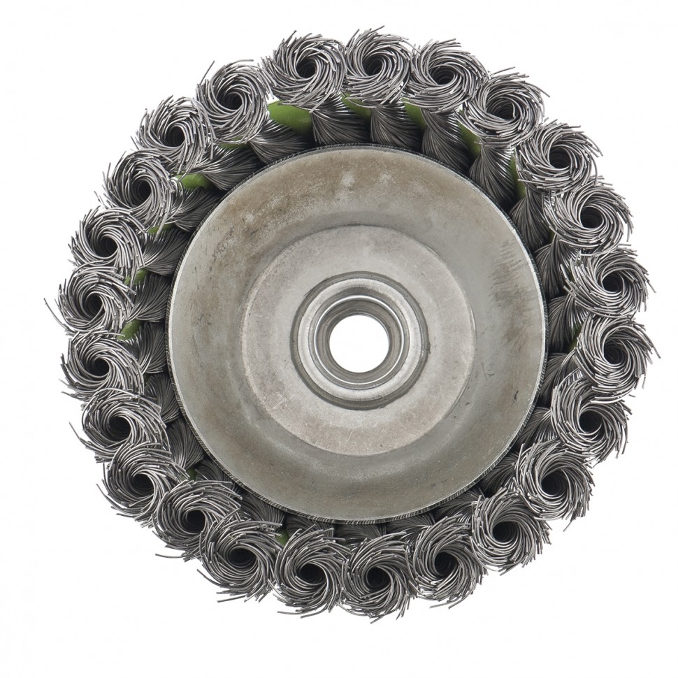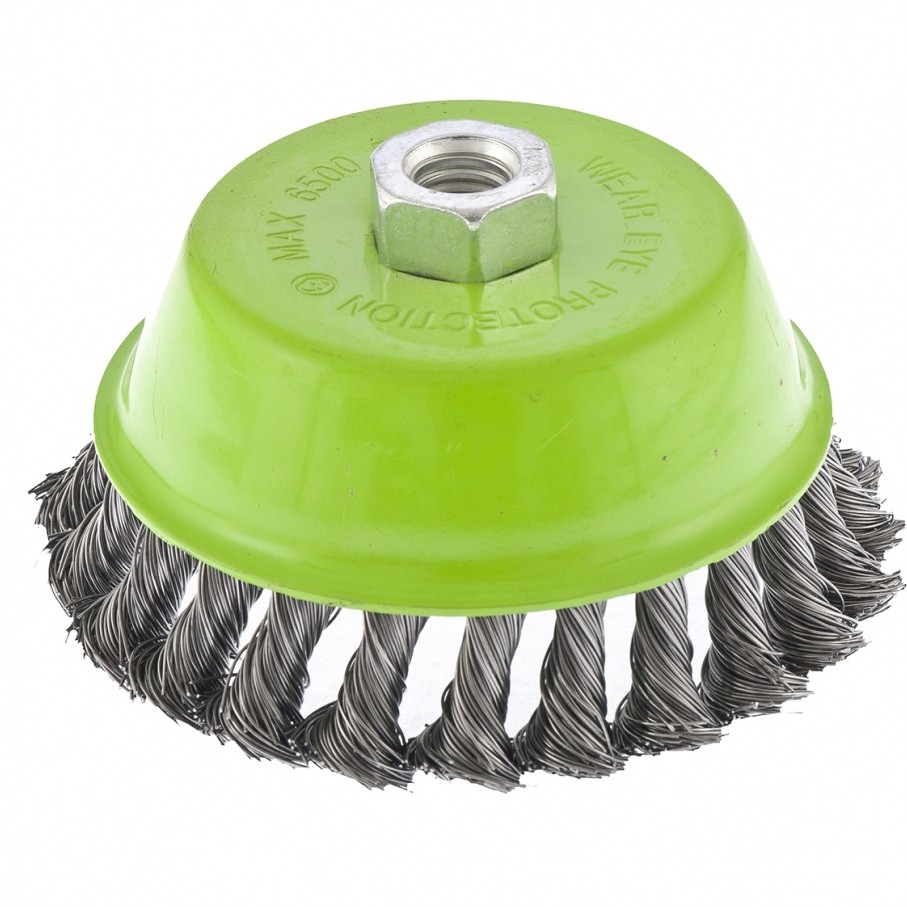 Щетка Сибртех «Чашка» 746247 диаметром 75 мм, с присоединительной резьбой М14, с щетиной из крученой проволоки диаметром 0,5 мм, устанавливается на УШМ, поддерживающую работу со скоростью 12500 об/мин. Изделие предназначено для грубой (черновой) обработки поверхностей и подходит для удаления загрязнений, снятия толстого слоя ржавчины, ЛКМ, зачистки сварных швов.ПреимуществаПрочность и долговечность — щетина из крученой стальной проволоки выдерживает значительные нагрузки.Высокая производительность — насадка формы «чашка» оптимальна для зачистки больших поверхностей.Универсальность — щетка подходит для обработки любых твердых материалов: металла, древесины, цветных металлов, пластика и т. д.Устойчивость к разрушению — корпус покрыт эмалью, а щетина —техническим маслом.
