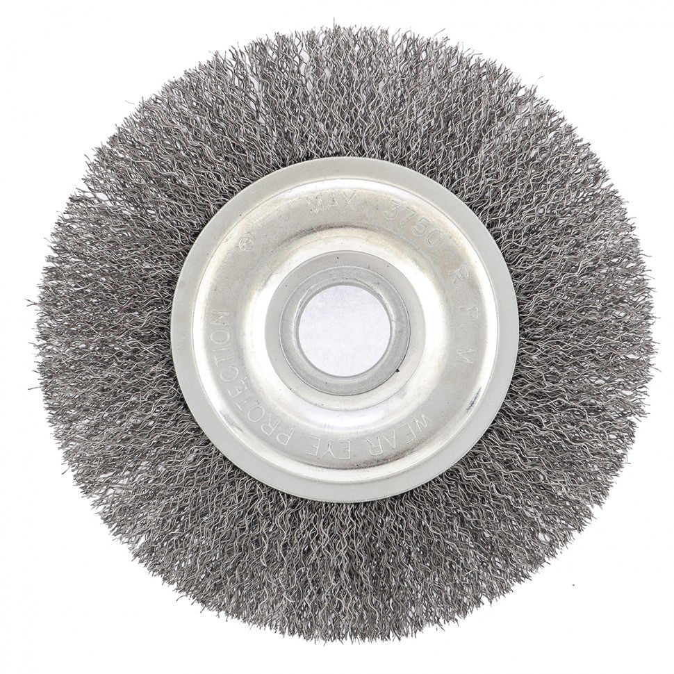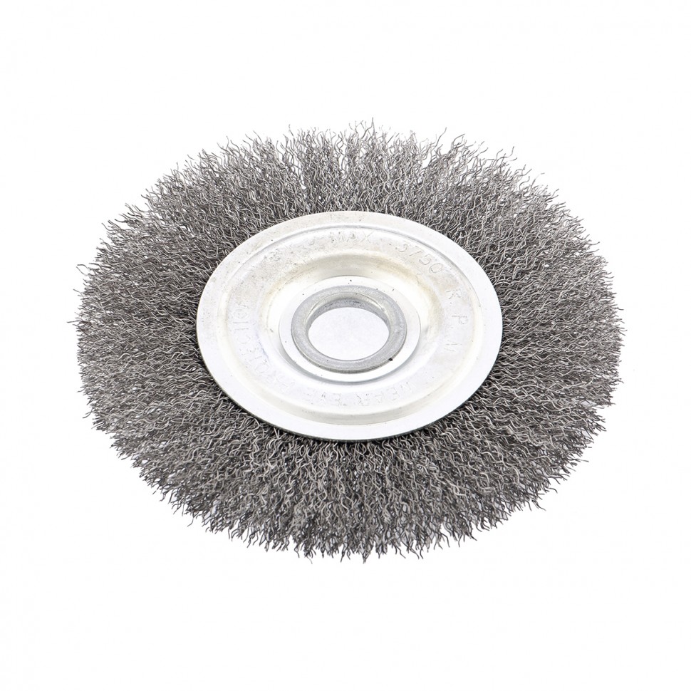 Плоская щетка для УШМ Сибртех 746647 диаметром 150 мм, с посадкой 22,2 мм, с щетиной из витой проволоки диаметром 0,3 мм, предназначена для щадящей очистки твердых поверхностей от загрязнений, ржавчины, остатков краски и других покрытий. Щетина из проволоки толщиной 0,3 мм постепенно снимает тонкий слой материала. Плоская форма щетки делает ее оптимальным инструментом для обработки внутренних углов, пазов, изгибов и малодоступных мест. Щетка позволяет придать шероховатость или подчеркнуть структуру материала. Насадка устанавливается на фланец углошлифовальной машины и подходит для продолжительной работы, не требующей частой смены оснасток. Рекомендуемая максимальная скорость вращения составляет 4500 об/мин. Для обеспечения безопасности оператора следует использовать средства индивидуальной защиты. Щетка применяется в строительной, производственной сфере, а также в быту.ПреимуществаБлагодаря витой проволоке щетина хорошо держит форму.Проволока из высококачественной стали обеспечивает щетке высокий ресурс работоспособности.Оцинкованный корпус и щетина, покрытая техническим маслом, защищены от коррозии, что продлевает срок службы оснастки.