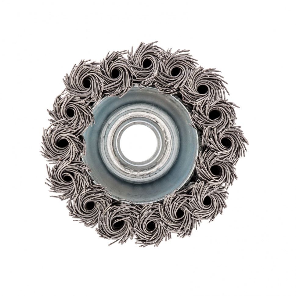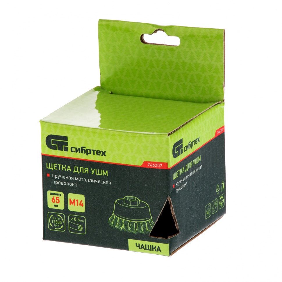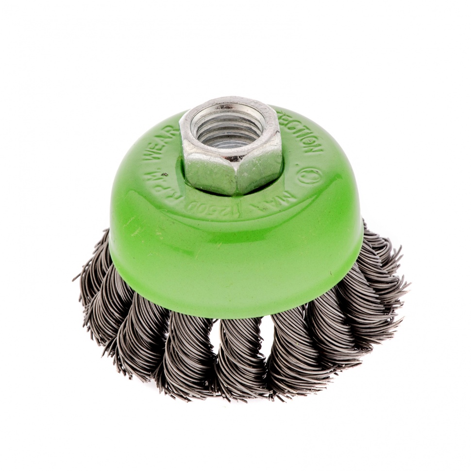 Щетка Сибртех «Чашка» 746207 диаметром 65 мм, с присоединительной резьбой М14, с щетиной из крученой проволоки диаметром 0,5 мм, устанавливается на УШМ, поддерживающую работу со скоростью 12500 об/мин. Изделие предназначено для грубой (черновой) обработки поверхностей и подходит для удаления загрязнений, снятия толстого слоя ржавчины, ЛКМ, зачистки сварных швов.ПреимуществаПрочность и долговечность — щетина из крученой стальной проволоки выдерживает значительные нагрузки.Высокая производительность — насадка формы «чашка» оптимальна для зачистки больших поверхностей.Универсальность — щетка подходит для обработки любых твердых материалов: металла, древесины, цветных металлов, пластика и т. д.Устойчивость к разрушению — корпус покрыт эмалью, а щетина —техническим маслом.