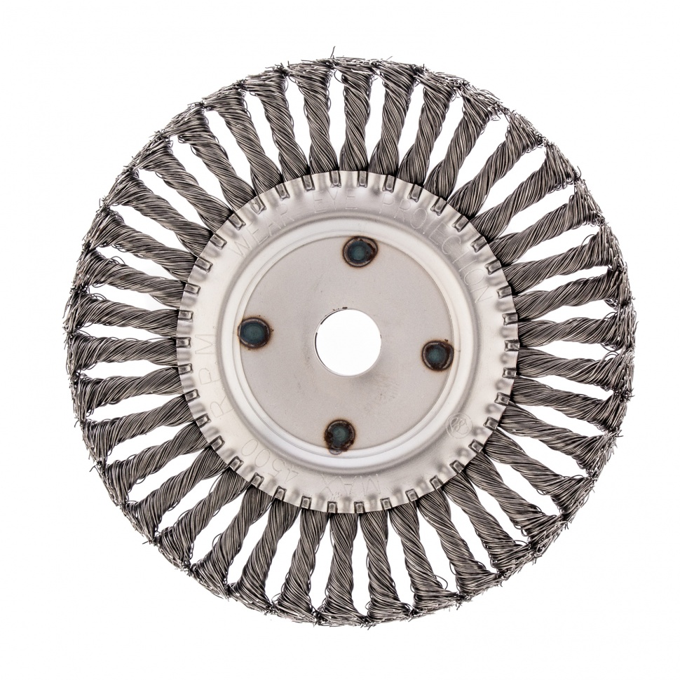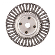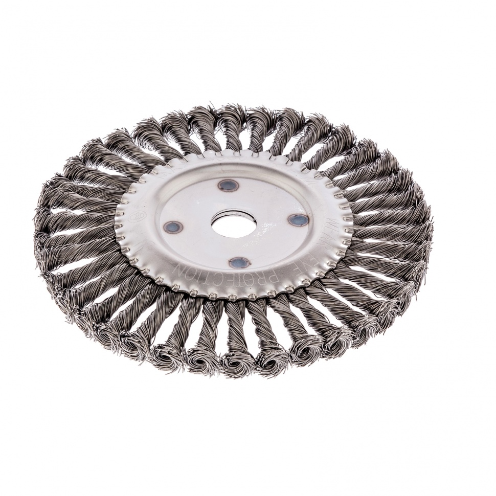 Плоская щетка Сибртех 746387 диаметром 200 мм и посадкой 22,2 мм, с щетиной из крученой проволоки толщиной 0,5 мм, устанавливается на вал УШМ, поддерживающей скорость вращения не более 6000 об/мин. Эффективно удаляет загрязнения, толстый слой ржавчины и лакокрасочных материалов с поверхностей, поэтому используется для проведения грубой (черновой) обработки. Плоской щеткой удобно очищать труднодоступные места, в том числе углы и изгибы.ПреимуществаДолговечность — щетина из высококачественной стальной проволоки устойчива к износу.Универсальность — щетка подходит для обработки любых твердых поверхностей: из металла, древесины, цветных металлов, пластика и т. д.Стойкость к разрушению — корпус оцинкован, а щетина покрыта техническим маслом для защиты от коррозии.