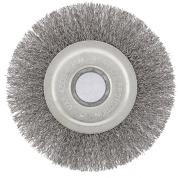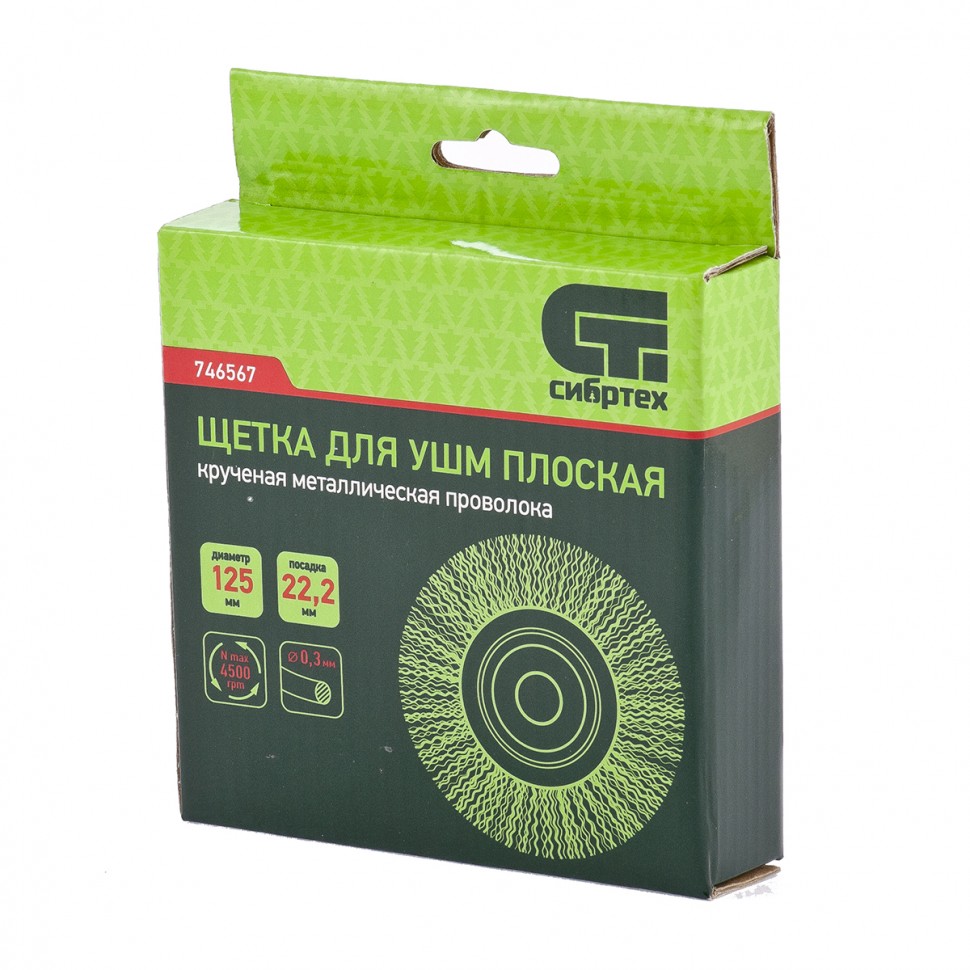 Плоская щетка для УШМ Сибртех 746567 диаметром 125 мм, с посадкой 22,2 мм, с щетиной из витой проволоки диаметром 0,3 мм, предназначена для щадящей очистки твердых поверхностей от загрязнений, ржавчины, остатков краски и других покрытий. Щетина из тонкой проволоки постепенно снимает тонкий слой материала, позволяя придать шероховатость или подчеркнуть структуру материала.Насадка устанавливается на фланец углошлифовальной машины и подходит для продолжительной работы, не требующей частой смены оснасток. Рекомендуемая максимальная скорость вращения составляет 4500 об/мин. Для обеспечения безопасности пользователя следует использовать средства индивидуальной защиты. Щетка применяется в строительной, производственной сфере, а также в быту.ПреимуществаЭффективная обработка рельефных поверхностей — плоская щетка оптимальна для обработки внутренних углов, пазов, изгибов и малодоступных мест.Устойчивость к деформации — щетина из витой проволоки хорошо держит форму.Высокий ресурс — проволока из высококачественной стали устойчива к истиранию.Защита от коррозии — корпус оцинкован, щетина покрыта техническим маслом.