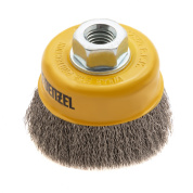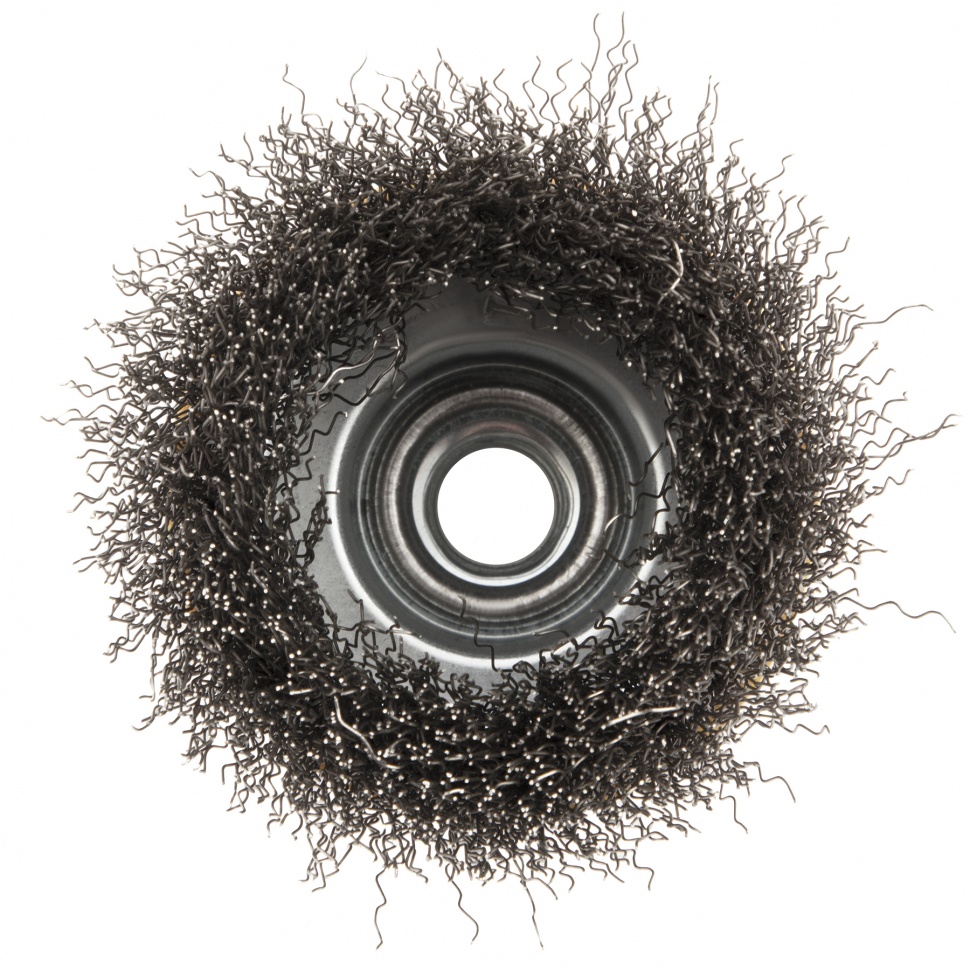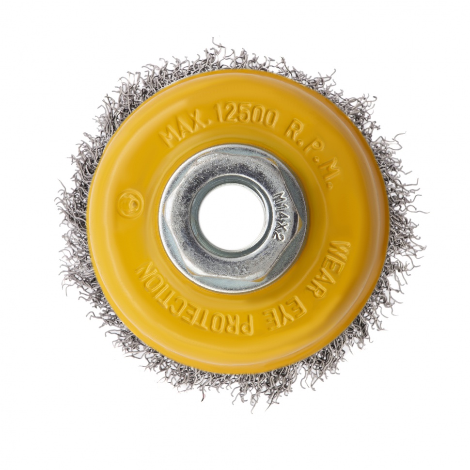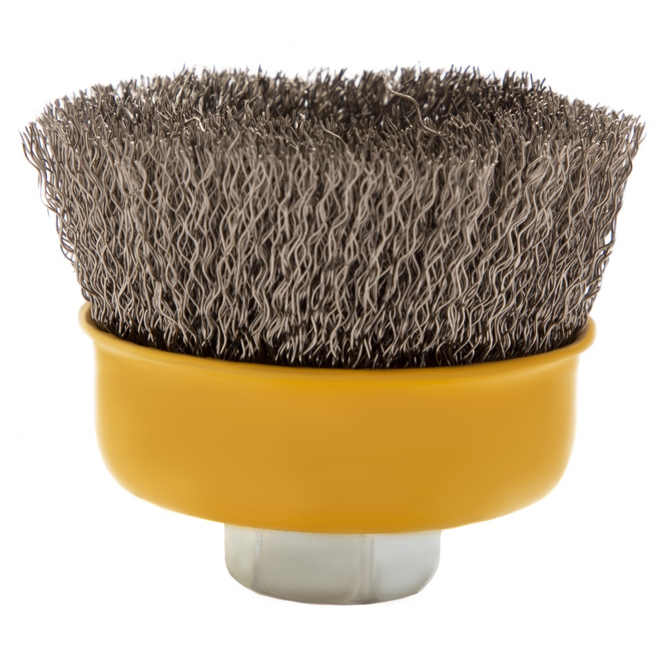 Щетка для УШМ «Чашка» Denzel 746043, М14, диаметром 75 мм, с щетиной из витой нержавеющей проволоки диаметром 0,3 мм, позволяет быстро и аккуратно очистить металлическую, деревянную или пластиковую поверхность от незначительных загрязнений и ржавчины, а также удалить остатки лакокрасочных материалов, сделать поверхность шероховатой или матовой. Насадка подходит для очистки плоских участков большой площади. Поскольку щетина выполнена из нержавеющей стали, щетку можно использовать для обработки изделий из нержавейки. Щетка устанавливается на вал углошлифовальной машины (УШМ) и предназначена для работы с максимальной скоростью 12500 об/мин. Во время работы обязательно соблюдение техники безопасности и использование средств индивидуальной защиты. Щетку применяют в строительстве, на производстве, а также в быту.ПреимуществаЩетина изготовлена из нержавеющей стали AISI 201, поэтому ее частицы не вызывают микрокоррозии обрабатываемой поверхности.Проволока имеет витую форму, что обеспечивает высокую деформационную стойкость щетины.Щетина из нержавейки и покрытый эмалью корпус не подвержены коррозии, поэтому насадку можно использовать в условиях повышенной влажности.Для крепления на вал УШМ предусмотрена гайка М14, что позволяет быстро устанавливать и заменять оснастку.Корпус и гайка усилены, поэтому щетка устойчива к повышенным нагрузкам.Щетка изготовлена под строгим технологическим контролем, что гарантирует ее высокое качество.