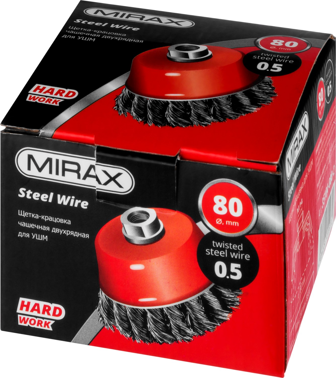 Каждая щетка-крацовка MIRAX проходит обязательный контроль качества. Все изготавливаемые щетки соответствуют действующим стандартам качества и обеспечивают безопасную работу в четко регламентированном диапазоне оборотов. Применяется для тяжелых зачистных работ.