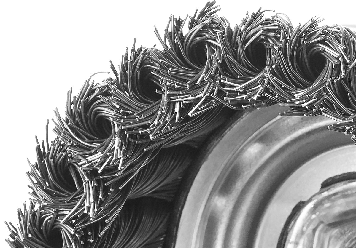 - Повышенный ресурс щетки благодаря еще более высокой жесткости сплетенного пучка и увеличенной толщине проволоки