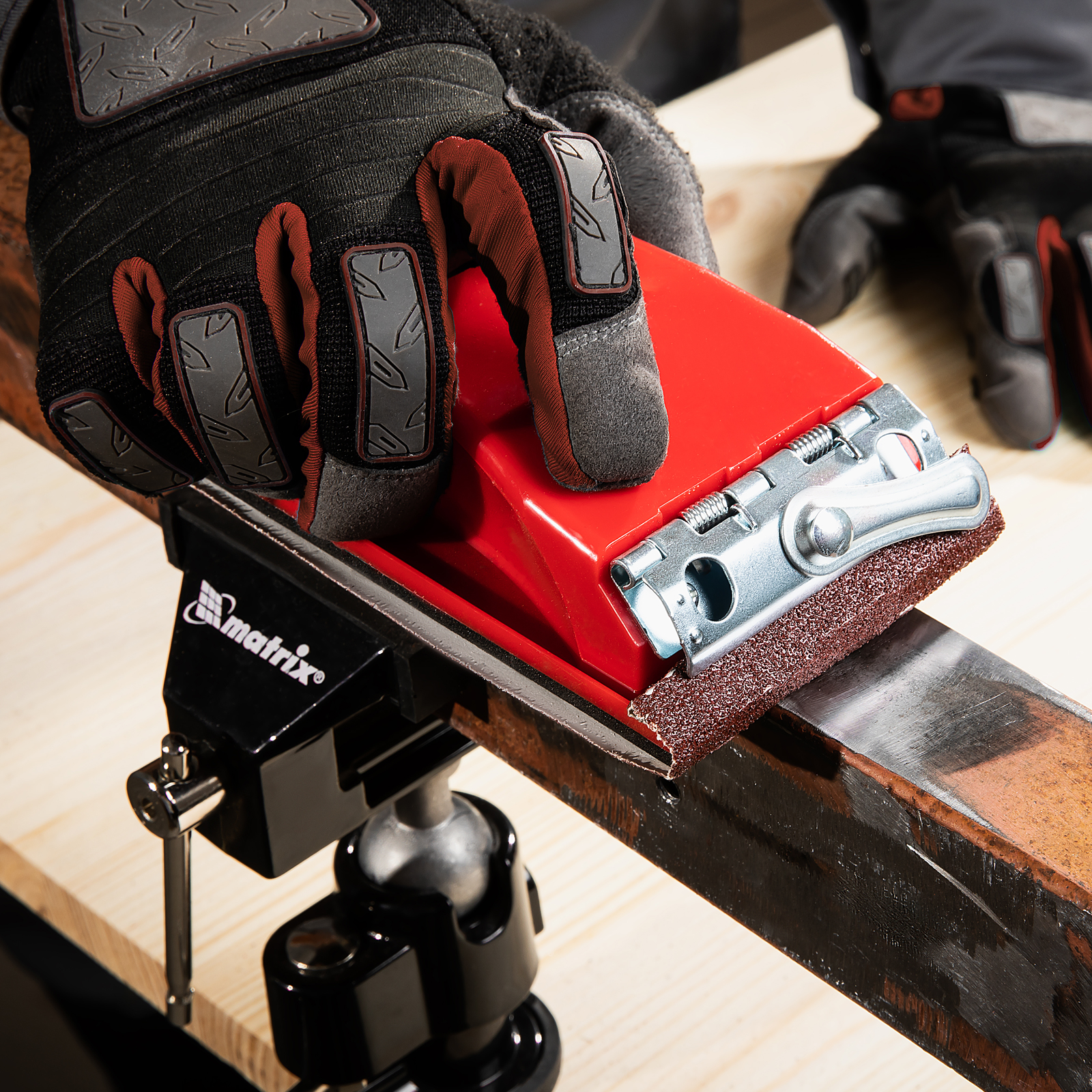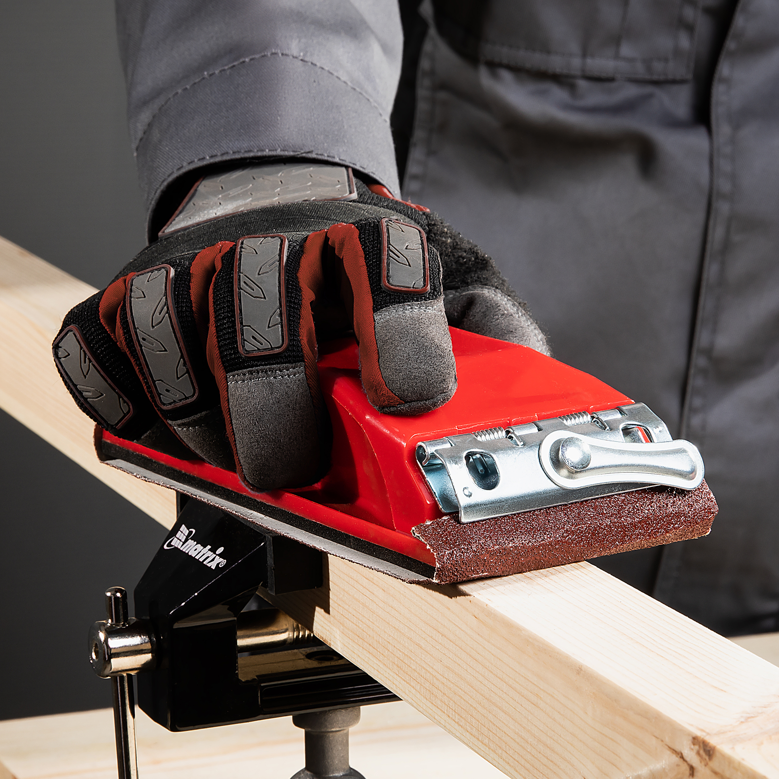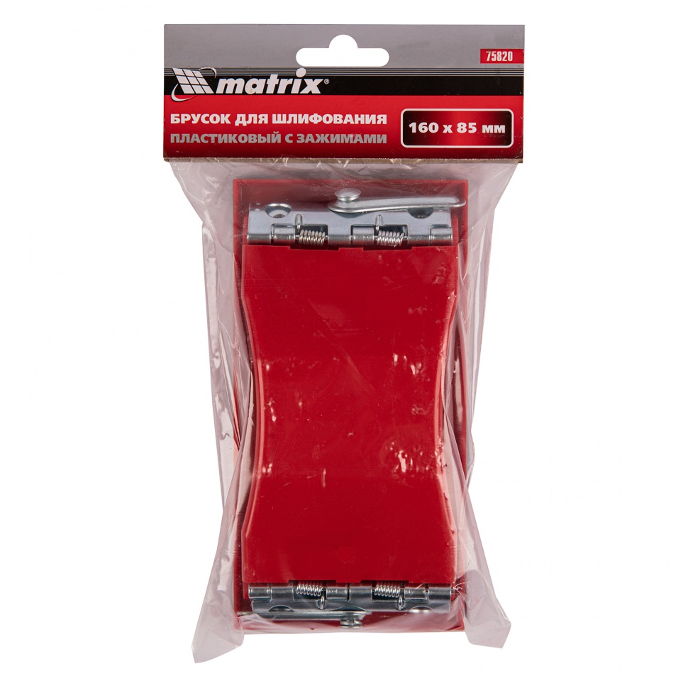 Пластиковый брусок для шлифования с зажимами Matrix 75820, с размером подошвы 160 х 85 мм, применяется для ручной шлифовки плоских поверхностей. На него устанавливают абразивные листы или сетки любой зернистости. Инструмент используется при проведении строительных, ремонтных, кузовных работ.ПреимуществаБыстрозажимной механизм позволяет быстро и надежно зафиксировать шлифовальный материал.Мягкое основание обеспечивает высокое качество поставленных задач, особенно при работе с мелкозернистым абразивом.Благодаря боковым выемкам на корпусе брусок удобно держать в руке — мастер не устанет даже при длительной работе.Брусок выполнен из высококачественного и нетоксичного АБС-пластика, не ржавеет и не деформируется, поэтому прослужит долго.