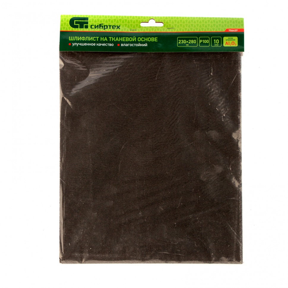 Шлифлист на тканевой основе Сибртех Р 100 арт. 756437 размером 230 x 280 мм подходит для ручной и машинной шлифовки поверхностей. Он позволяет работать с материалами из дерева, металла, пластмассы. Среднезернистый абразив Р100 обеспечивает высокое качество чистовой обработки поверхностей, эффективное удаление тонкого слоя лакокрасочных покрытий, ржавчины, загрязнений и небольших заусенцев.ПреимуществаЗерно из оксида алюминия отличается заостренной формой и твердостью, что позволяет увеличить скорость обработки поверхностей.Абразивный слой с частицами размером 125-160 мкм оптимален для получения гладких поверхностей после первичной обработки.Шлифлист влагостойкий, поэтому его можно использовать для обработки сырой древесины.Основа из гибкой и прочной на разрыв ткани обеспечивает повышенную износостойкость шлифлиста и удобство в работе.В набор входит 10 шлифлистов, их хватит на долгое время.