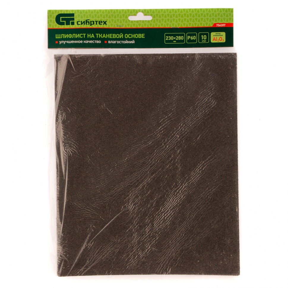 Шлифлист на тканевой основе Сибртех Р 60 арт. 756397 размером 230 х 280 мм подходит для ручной и машинной шлифовки поверхностей. Он позволяет работать с материалами из дерева, металла, пластмассы. Крупнозернистый абразив Р60 оптимален для черновой обработки поверхностей, эффективного удаления ржавчины, загрязнений, заусенцев, старых лакокрасочных покрытий.ПреимуществаЗерно из оксида алюминия отличается заостренной формой и твердостью, что позволяет увеличить скорость обработки поверхностей.Крупные зерна размером 250-315 мкм медленно забиваются отработанным материалом, за счет чего абразив дольше сохраняет эффективность.Шлифлист влагостойкий, поэтому его можно использовать для обработки сырой древесины.Основа из гибкой и прочной на разрыв ткани обеспечивает повышенную износостойкость шлифлиста и удобство в работе.В набор входит 10 шлифлистов, их хватит на долгое время.
