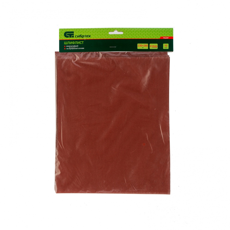 Шлифлист Сибртех 756287 размером 230 х 280 мм оптимален для окончательной обработки. Устанавливается в плоскошлифовальную машину, а также различные шлифовальные приспособления, либо применяться для ручной обработки. Мелкозернистый электрокорунд P1500 оптимален для получения гладкой (зеркальной) поверхности.ПреимуществаУниверсальность — шлифлист предназначен для обработки различных поверхностей: деревянных, металлических, пластмассовых, шпаклеванных, в том числе подготовленных под отделку и покраску.Абразив из оксида алюминия 1-го класса — твердые крупицы заостренной формы обеспечивают высокую скорость обработки.Возможность обработки неровных поверхностей — бумажная основа в сочетании с тонкой структурой листа обеспечивают высокую чувствительность к рельефу поверхности.Влагостойкость — шлифлист может использоваться для обработки сырой древесины.Удобная упаковка — набор состоит из 10 штук.