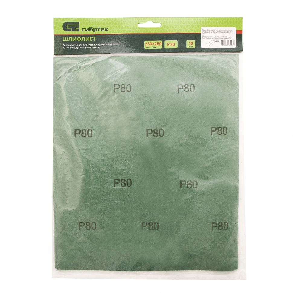 Шлифлист Сибртех 756067 размером 230 х 280 мм подходит для черновой обработки. Устанавливается в плоскошлифовальную машину, а также различные шлифовальные приспособления, либо применяться для ручной обработки. Крупнозернистый электрокорунд Р80 способен справиться со старыми покрытиями, ржавчиной и загрязнениями, подготовкой поверхности к дальнейшей обработке.ПреимуществаУниверсальность — шлифлист предназначен для обработки различных поверхностей: деревянных, металлических, пластмассовых, шпаклеванных, в том числе подготовленных под отделку и покраску.Абразив из оксида алюминия 1-го класса — твердые крупицы заостренной формы обеспечивают высокую скорость обработки.Возможность обработки неровных поверхностей — бумажная основа в сочетании с тонкой структурой листа обеспечивают высокую чувствительность к рельефу поверхности.Влагостойкость — шлифлист может использоваться для обработки сырой древесины.Удобная упаковка — набор состоит из 10 штук.