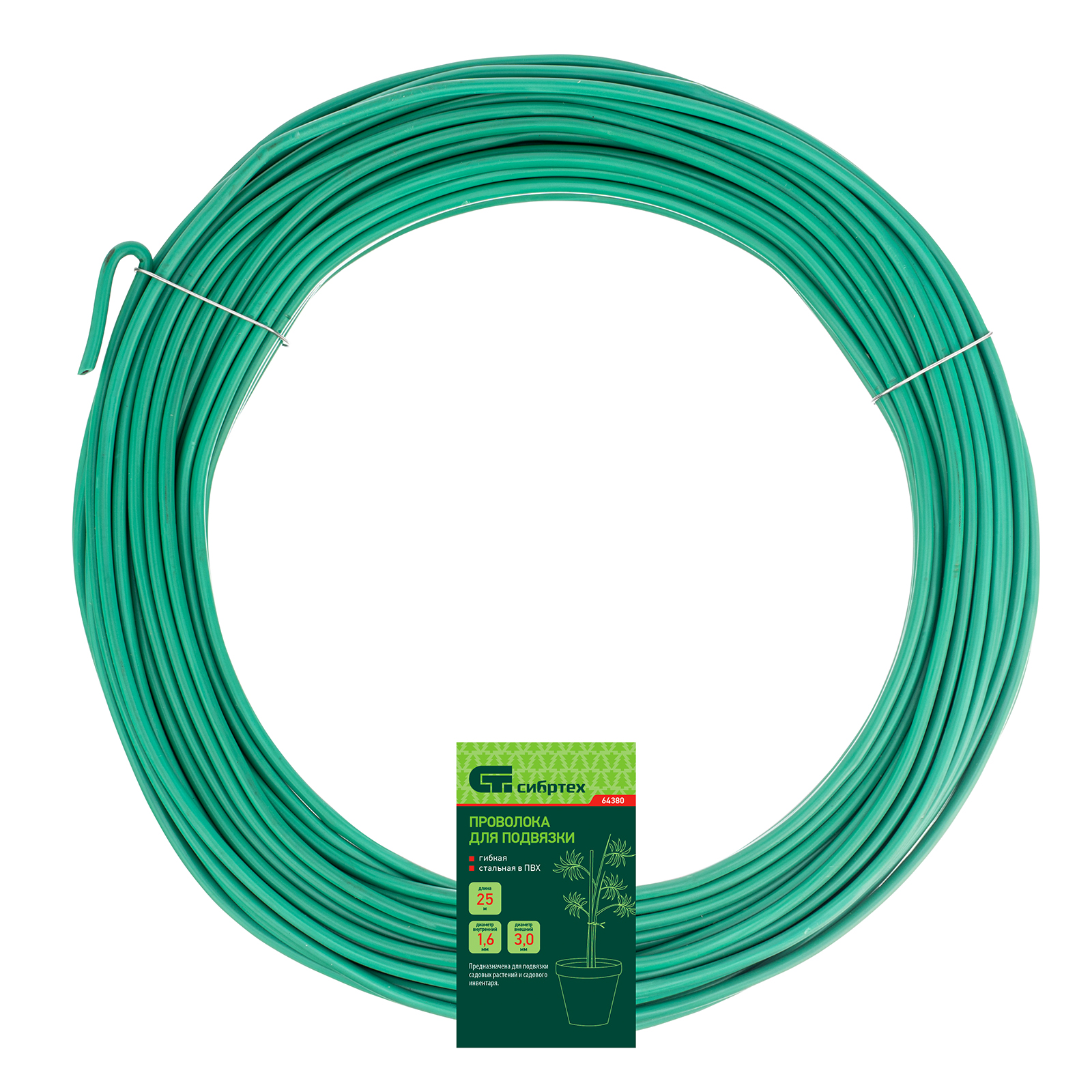 Зеленая проволока для подвязки Сибртех 64380, стальная в ПВХ, с внутренним и внешним диаметром 1,6 и 3,0 мм соответственно, будет полезна в дачном хозяйстве. Ею удобно подвязывать растения или создавать шпалерные системы. Изделие оптимально подходит для удерживания тяжелых стеблей.ПреимуществаСтальной сердечник — проволока не теряет форму в процессе эксплуатации.Оплетка из ПВХ — подвязочная проволока не подвержена коррозии и удобна для работы, т.к. не травмирует руки пользователя.Зеленый цвет — изделие гармонично вписывается в садовое убранство.