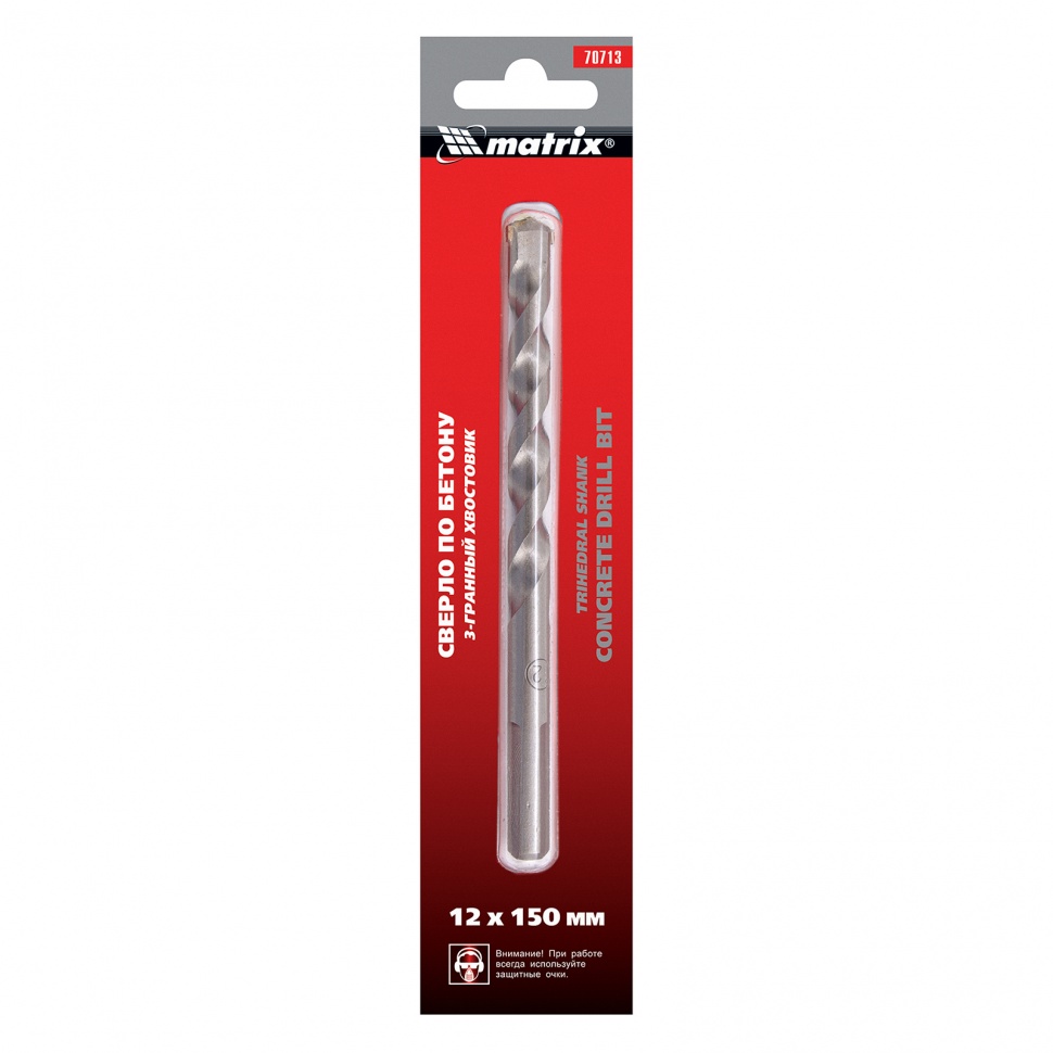 Сверло по бетону Matrix 70713 размером 12 х 150 мм, с 3-гранным хвостовиком, используется для получения отверстий с помощью дрели. Пригодится для сверления бетона, мрамора, керамики и других твердых материалов.ПреимуществаСверло из прочной углеродистой стали 40Х устойчиво к нагрузкам и прослужит долго.Твердосплавная пластина ВК8 обеспечивает эффективное и точное сверление.3-гранный хвостовик не проворачивается в патроне во время работы.