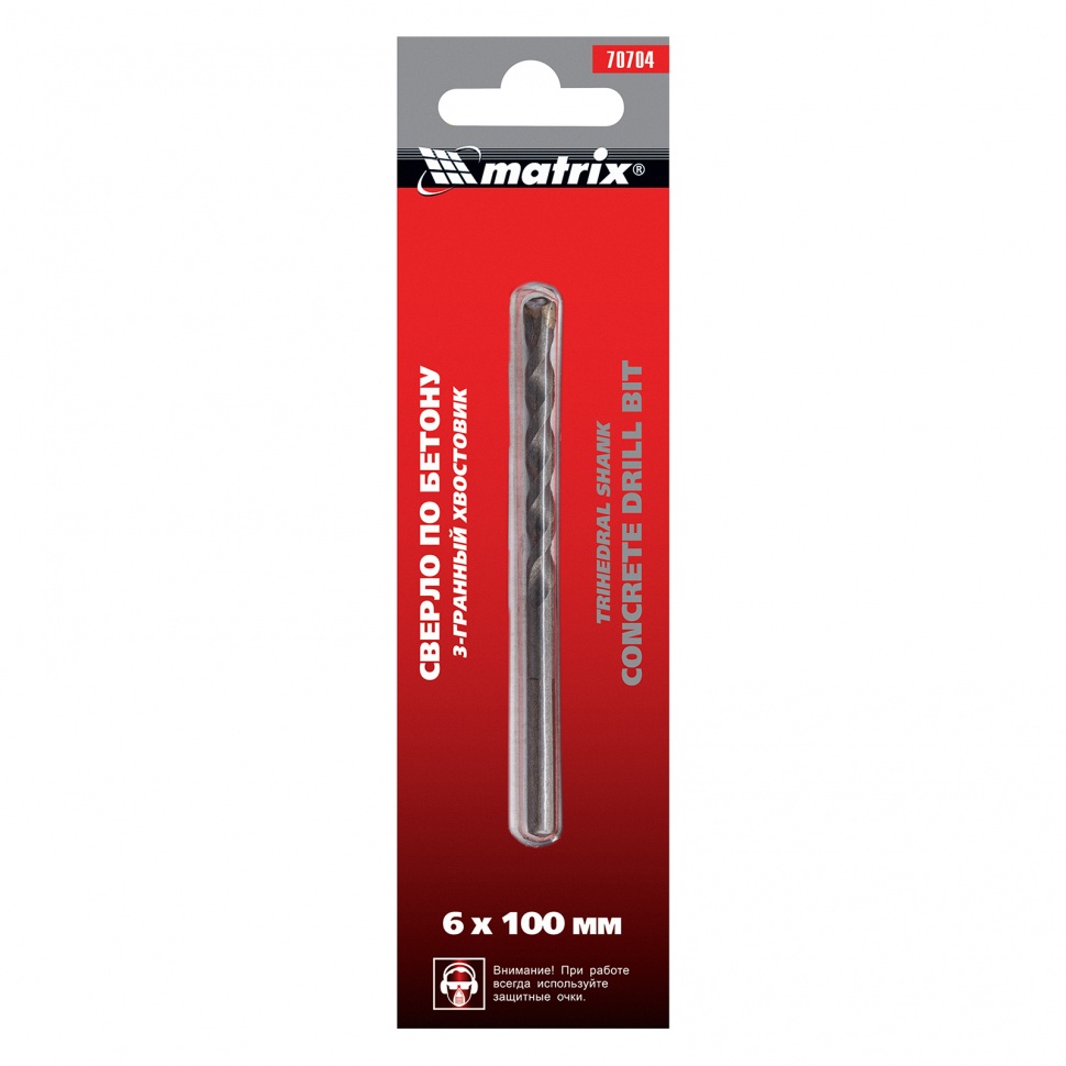 Сверло по бетону Matrix 70704 размером 6 х 100 мм, с 3-гранным хвостовиком, используется для получения отверстий с помощью дрели. Пригодится для сверления бетона, мрамора, керамики и других твердых материалов.ПреимуществаСверло из прочной углеродистой стали 40Х устойчиво к нагрузкам и прослужит долго.Твердосплавная пластина ВК8 обеспечивает эффективное и точное сверление.3-гранный хвостовик не проворачивается в патроне во время работы.