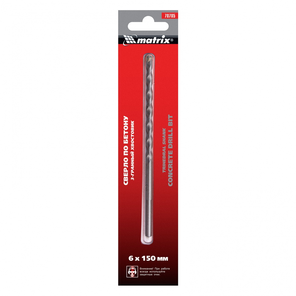 Сверло по бетону Matrix 70705 размером 6 х 150 мм, с 3-гранным хвостовиком, используется для получения отверстий с помощью дрели. Пригодится для сверления бетона, мрамора, керамики и других твердых материалов.ПреимуществаСверло из прочной углеродистой стали 40Х устойчиво к нагрузкам и прослужит долго.Твердосплавная пластина ВК8 обеспечивает эффективное и точное сверление.3-гранный хвостовик не проворачивается в патроне во время работы.