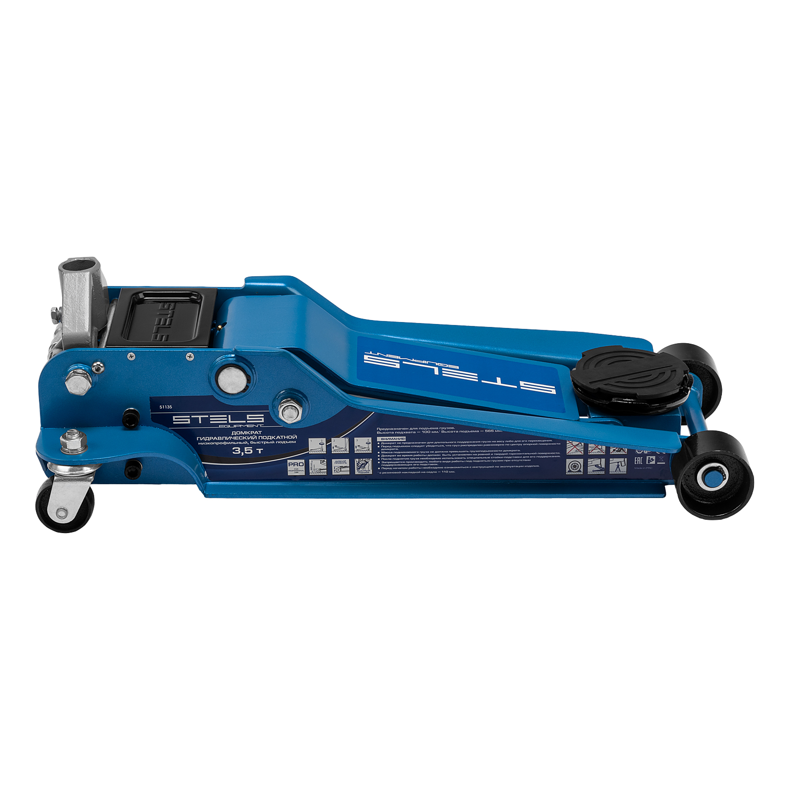 Профессиональный подкатной гидравлический домкрат Stels LOW PROFILE QUICK LIFT 51135 используется для быстрого подъема на высоту 100-565 мм всех типов автомобилей с низким клиренсом и массой до 3,5 тонн. Благодаря системе QUICK LIFT для достижения предельной высоты достаточно 10 качков рукоятки. Домкрат подходит для использования на станциях техобслуживания и шиномонтажа.Преимущества Аккуратная работа — резиновая опора и прорезиненная ручка защищают кузов автомобиля и корпус домкрата от повреждений. Надежная конструкция — карданная передача обеспечивает долговечность домкрата, двухплунжерный насос сохраняет работоспособность даже при выходе из строя одного из плунжеров — домкрат будет работать за счет второго. Защита от перегрузок — предохранительный клапан не позволяет поднимать грузы тяжелее 3,5 тонн. Долговечность — хромированные штоки и резиновые сальники устойчивы к износу, масленка для смазывания оси лапы позволяет продлить срок службы домкрата. Дополнительные возможности — в специальный лоток для мелких деталей можно сложить болты и гайки.