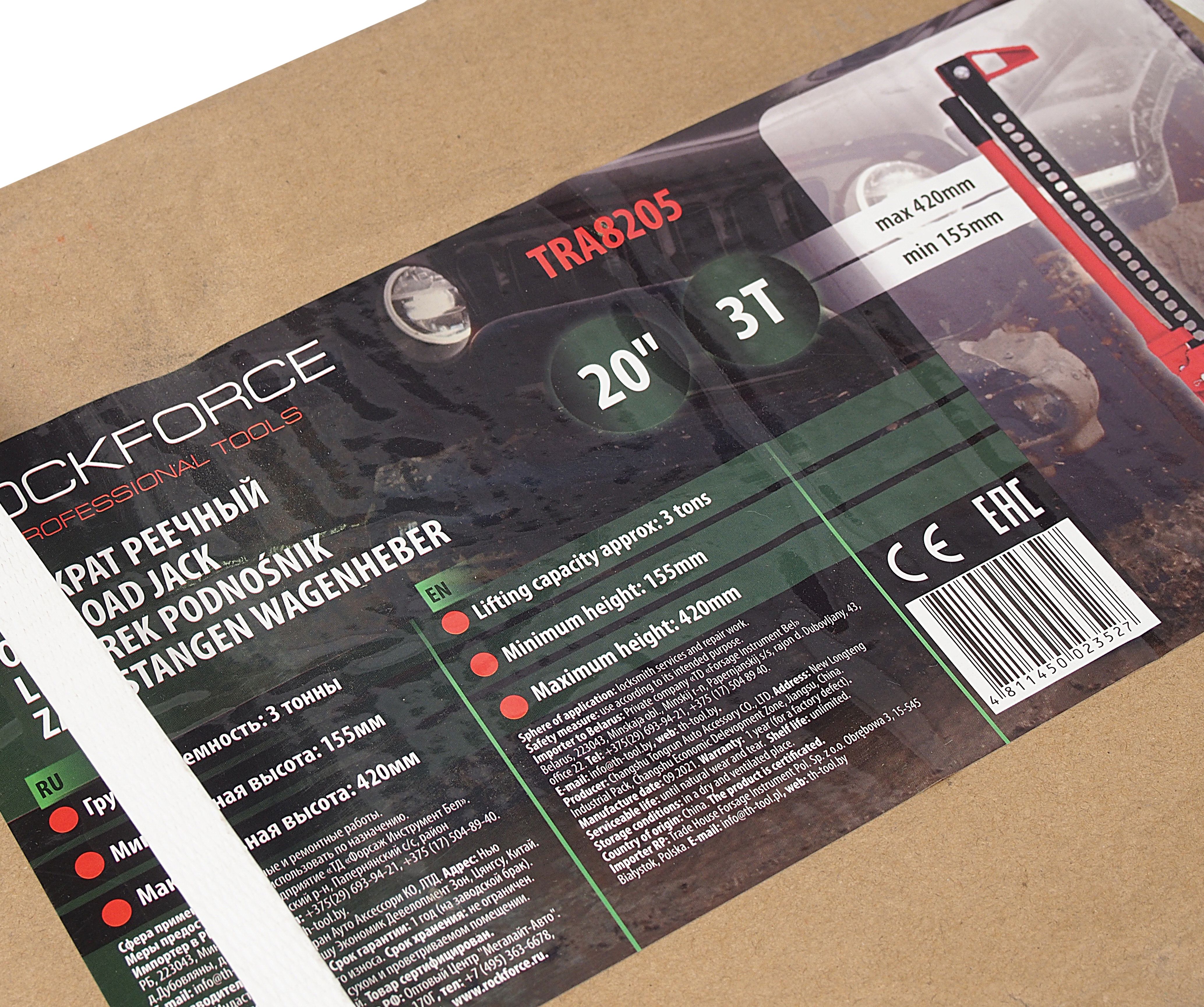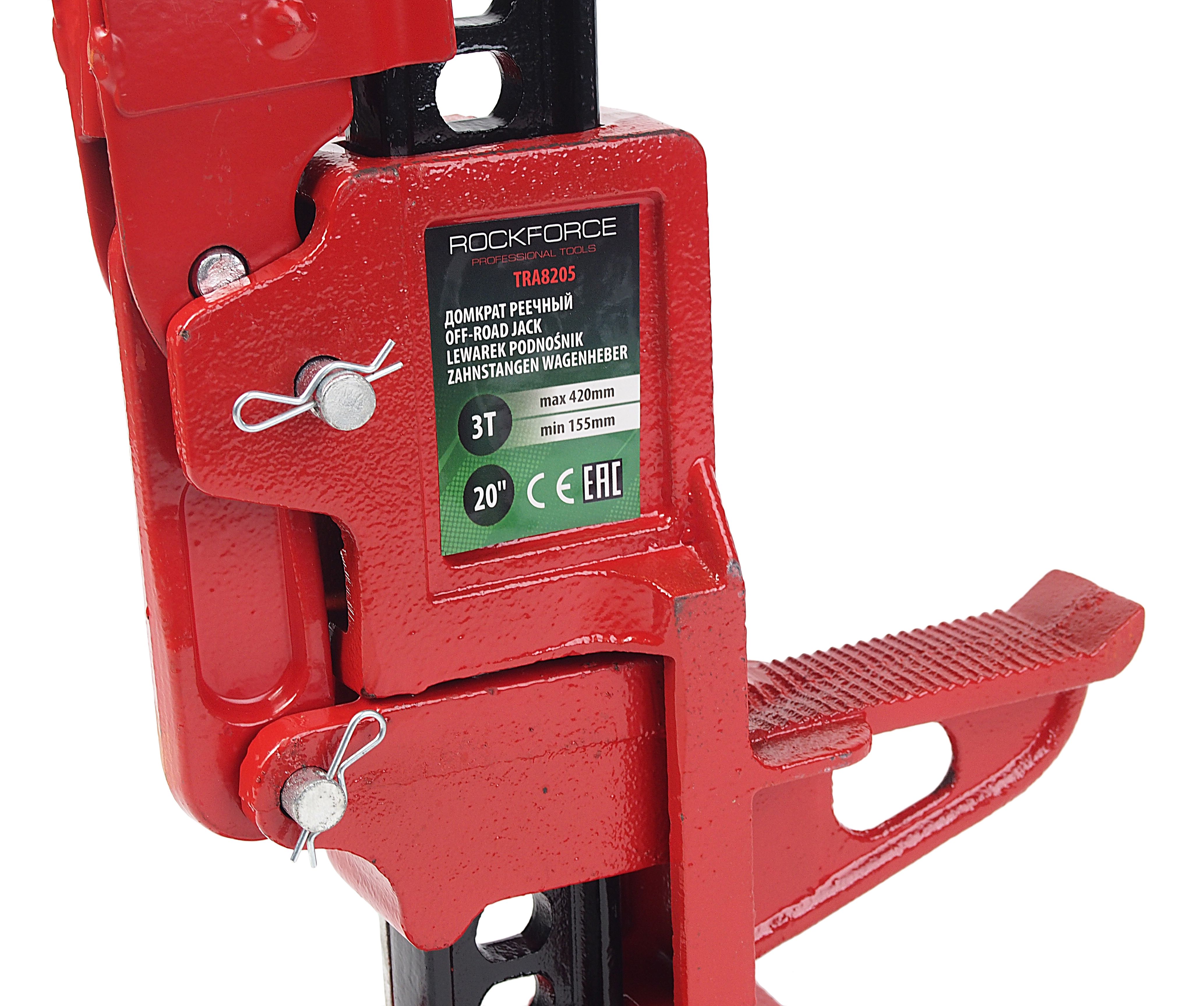 Домкрат RF-TRA8205 реечный 3т 20" (высота подхвата - 155мм, высота подъема - 420мм) ROCKFORCE /1