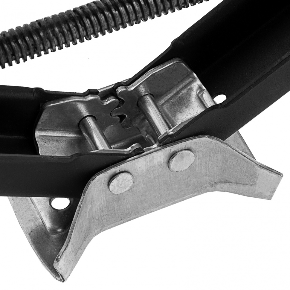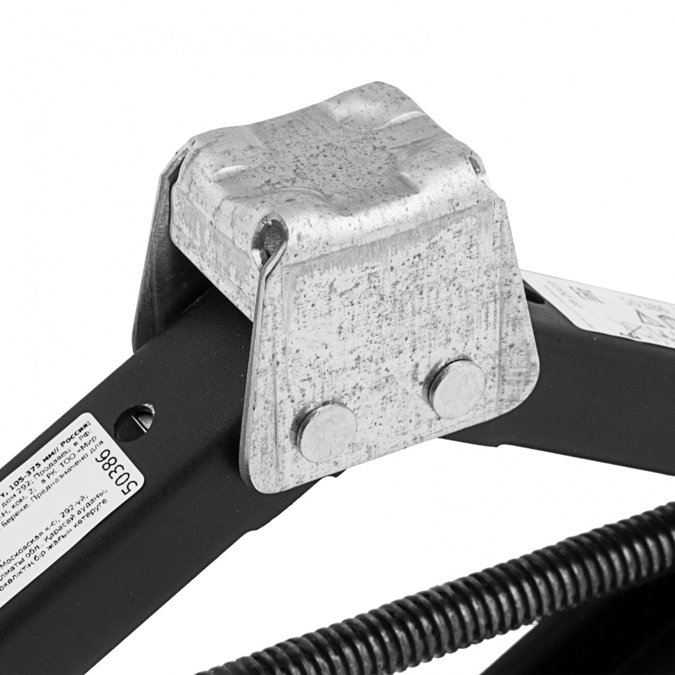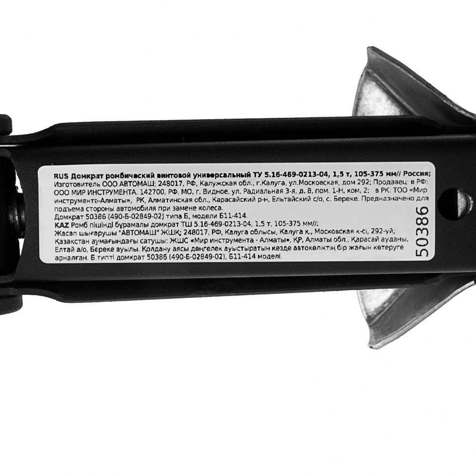 Универсальный винтовой ромбический домкрат 50386 соответствует ТУ 5.16-469-0213-04 и способен поднять груз массой 1,5 т на высоту от 105 до 375 мм. Предназначен для обслуживания легковых автомобилей. Высота подхвата составляет 105 мм, поэтому домкрат является универсальным. Он приводится в действие при помощи простого и надежного винтового механизма. Будет полезен в гараже, пригодится также и в дороге.ПреимуществаУстойчивость — благодаря широкому основанию домкрат не опрокидывается во время работы.Неприхотливость и долговечность — домкрат выдерживает эксплуатацию при низких температурах и не подвержен коррозии благодаря качественному лакокрасочному покрытию.Защита от самопроизвольного опускания груза — трапецеидальная резьба винта обеспечивает функцию самоторможения.Удобное хранение и транспортировка — домкрат компактен, весит всего 2,32 кг и поставляется в чехле.