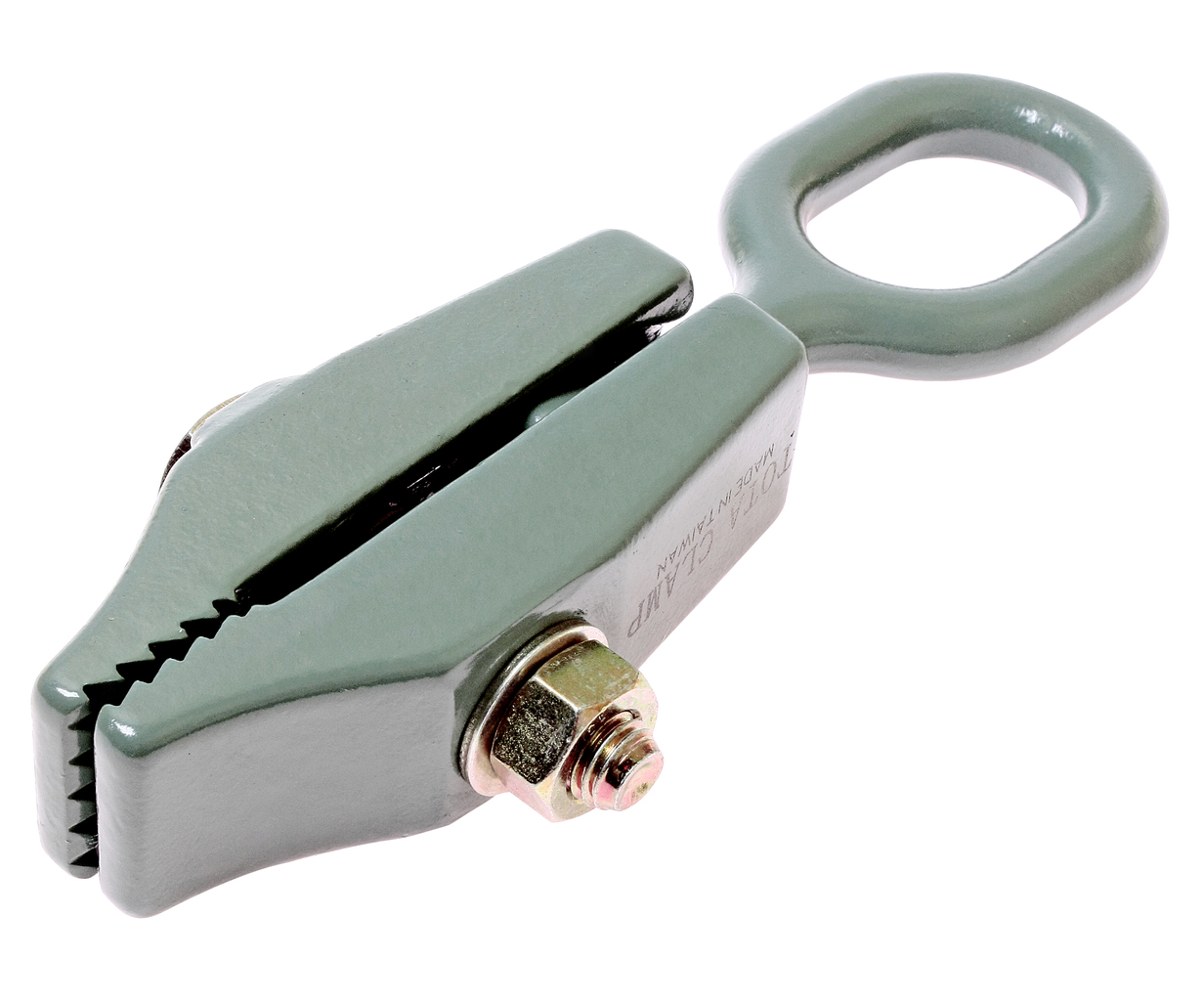 Конструкция состоит из штампованного кольца для цепи (крюка) и зубчатого захвата с пружинной фиксацией.