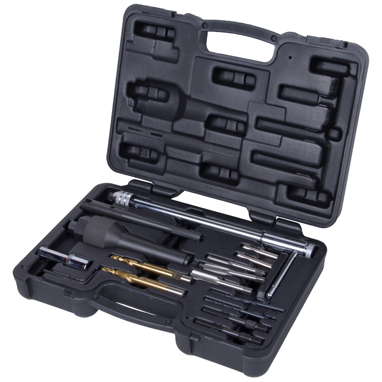 Сверла различного диаметра, втулки, конусы, а также метчики для восстановления резьбы свечей накаливания.