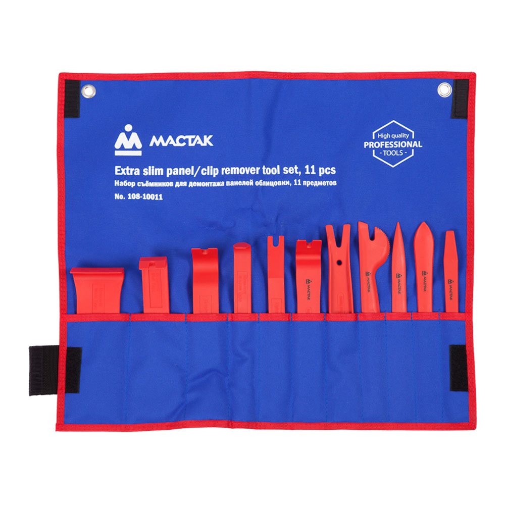 Инструменты изготовлены из специального нейлона и расположены в чехле из теторона, каждый в своей ячейке, что даёт возможность контролировать целостность набора и содержать его в полном порядке, а люверсы в чехле будут удобны для вывешивания набора на рабочем месте, к примеру, стенде или верстаке.