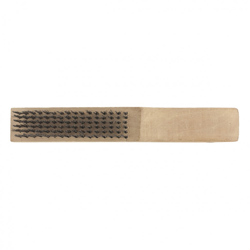 Зачистная 6-рядная щетка Сибртех 74806 с деревянной ручкой и ворсом из закаленной прямой проволоки помогает удалять загрязнения, ржавчину, остатки лакокрасочных покрытий, заусенцы с металлических и деревянных поверхностей, а также обрабатывать сварные швы. Ворс, расположенный в 6 рядов, обеспечивает качественную обработку указанных материалов. Изогнутая ручка позволяет задействовать всю рабочую поверхность щетины. Кордщетка используется для проведения строительных, ремонтных работ, пригодится дома или в гараже.ПреимуществаВорс из закаленной стальной проволоки, устойчив к износу и долговечен.Крепко зафиксированная проволока не выпадает во время работы.Проволока имеет устойчивость к коррозии.Прочный деревянный корпус обеспечивает надежность щетки.Эргономичная рукоятка удобно лежит в руке, что повышает комфорт во время работы.Отверстие в рукоятке позволяет организовать подвесное хранение инструмента.