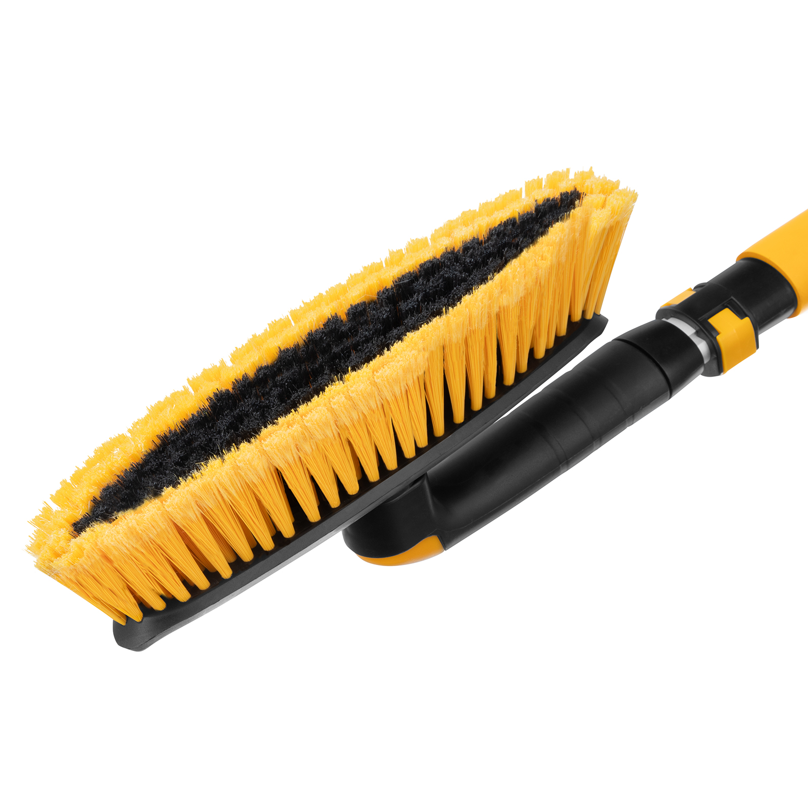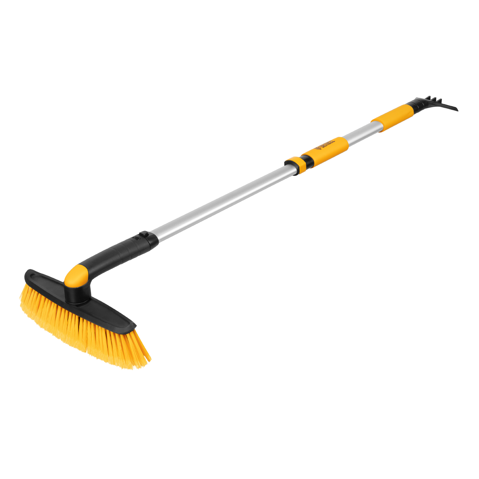 Щетка-сметка Denzel 55326 со скребком, поворотной головой и телескопической рукояткой длиной 750-1120 мм предназначена для быстрой и эффективной очистки кузова автомобиля от снега и наледи. Ее использование позволяет сохранить лакокрасочное покрытие автомобиля в хорошем состоянии, а также обеспечивает безопасность водителя и других участников дорожного движения.ПреимуществаВысокая прочность — усиленный телескопический корпус из легкого алюминиевого сплава выдерживает интенсивную эксплуатацию при температуре до -40 ℃.Регулировка длины — рукоятка выдвигается и фиксируется на длине 750-1120 мм, за счет чего можно без труда очистить крышу транспортного средства.Эффективность — скребок шириной 115 мм имеет специальные зубья, поэтому успешно справляется с толстым слоем наледи.Бережная очистка — особо мягкая распушенная щетина шириной 320 мм не портит лакокрасочное покрытие автомобиля.Поворотный механизм — щетка фиксируется с шагом 45° в одном из 3 положений.Удобная эксплуатация — на рукоятке имеется мягкая накладка, благодаря которой работать комфортно даже в сильные морозы.