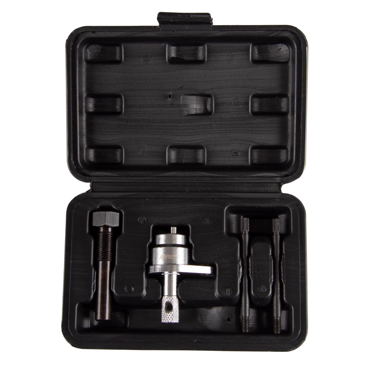 Может применяться для замены цепи ГРМ на двухвальном двигателе 1.6L MPI 85 л.с. (код CFNB) Калужской сборки, но используя второй фиксатор распредвала VAG T10414.