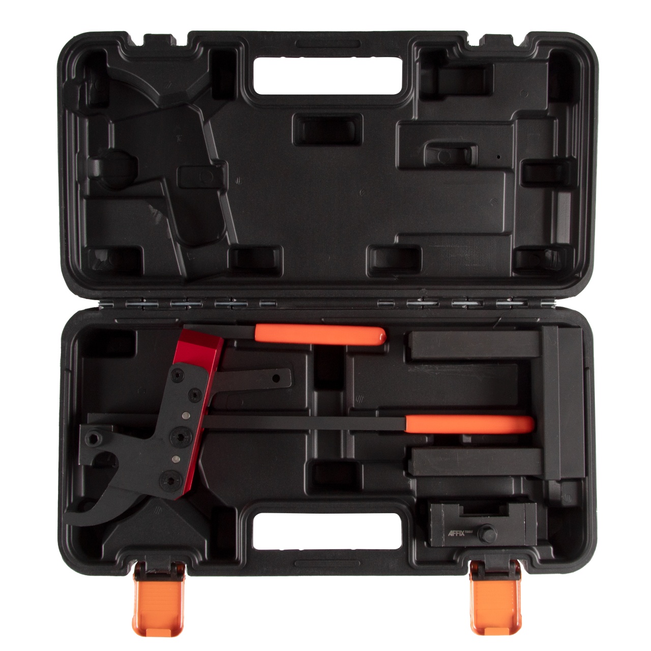 Материалы – инструментальная сталь, оксидированное покрытие, алюминий, PVC (обливные рукояти), пластик PE-HD (кейс)