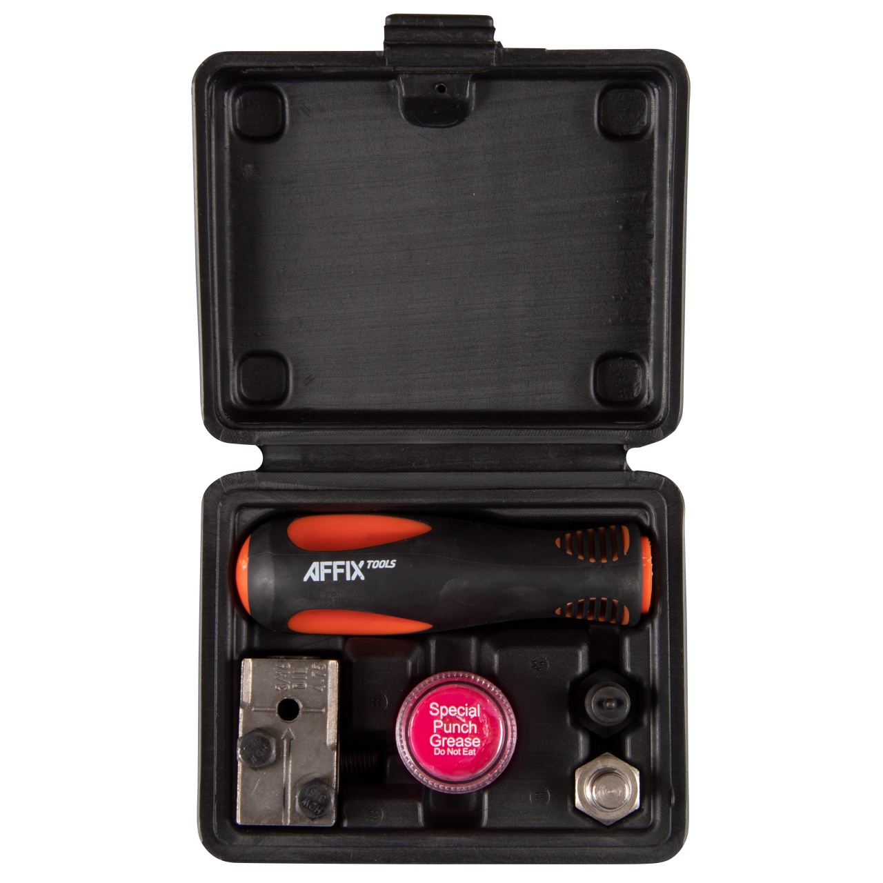 Материалы – сталь, PE+TPR (рукоять), пластик (кейс)