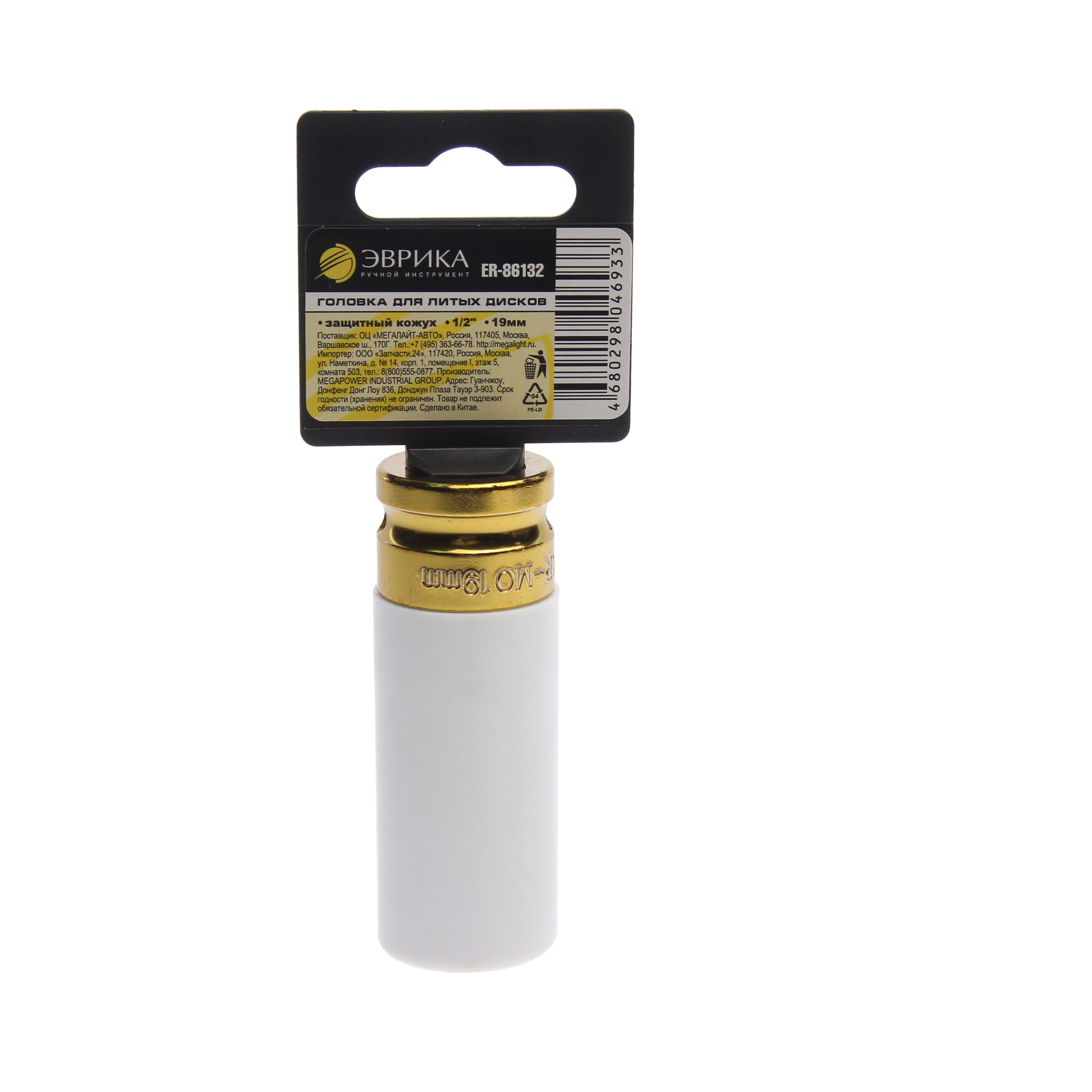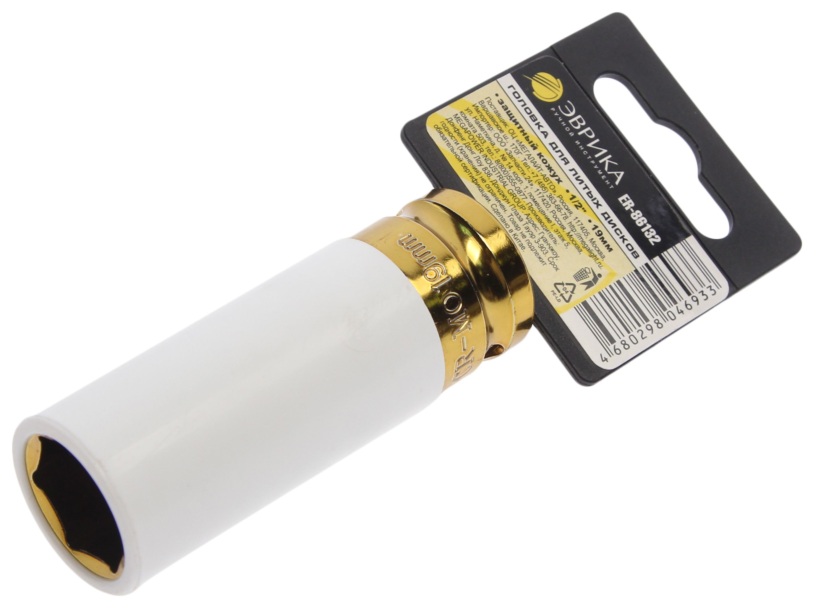 Головка 19мм 1/2" для литых дисков с защитным кожухом на пластиковом держателе(L-80мм) ЭВРИКА ER-86132
