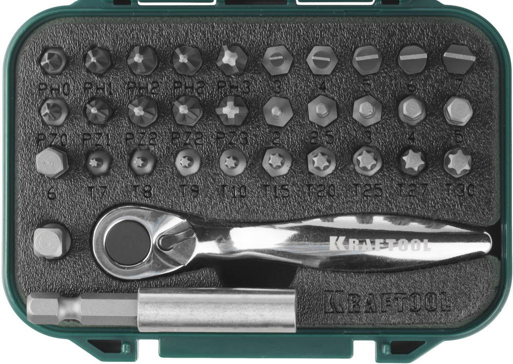 Набор бит с мини-трещоткой KRAFTOOL серии «PRO» предназначен для профессионального применения.