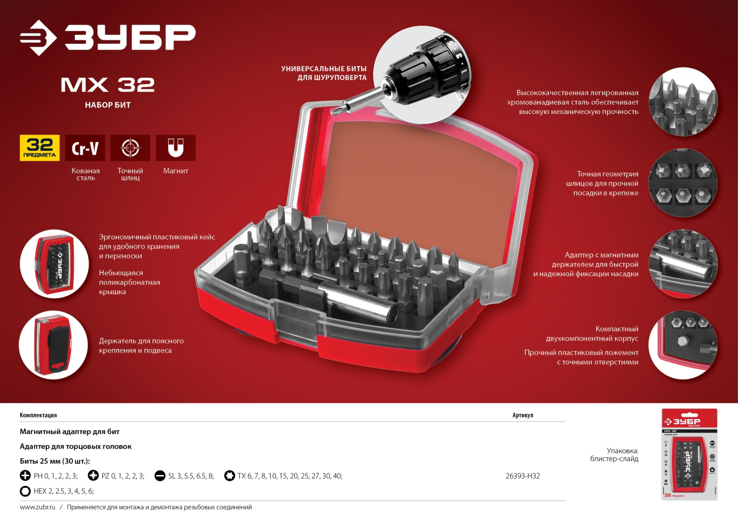 Биты ЗУБР для ручного и механизированного инструмента изготовлены из высококачественной стали и имеют точную геометрию шлицов, что обеспечивает длительный срок службы.
