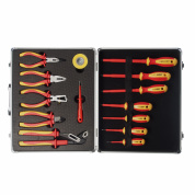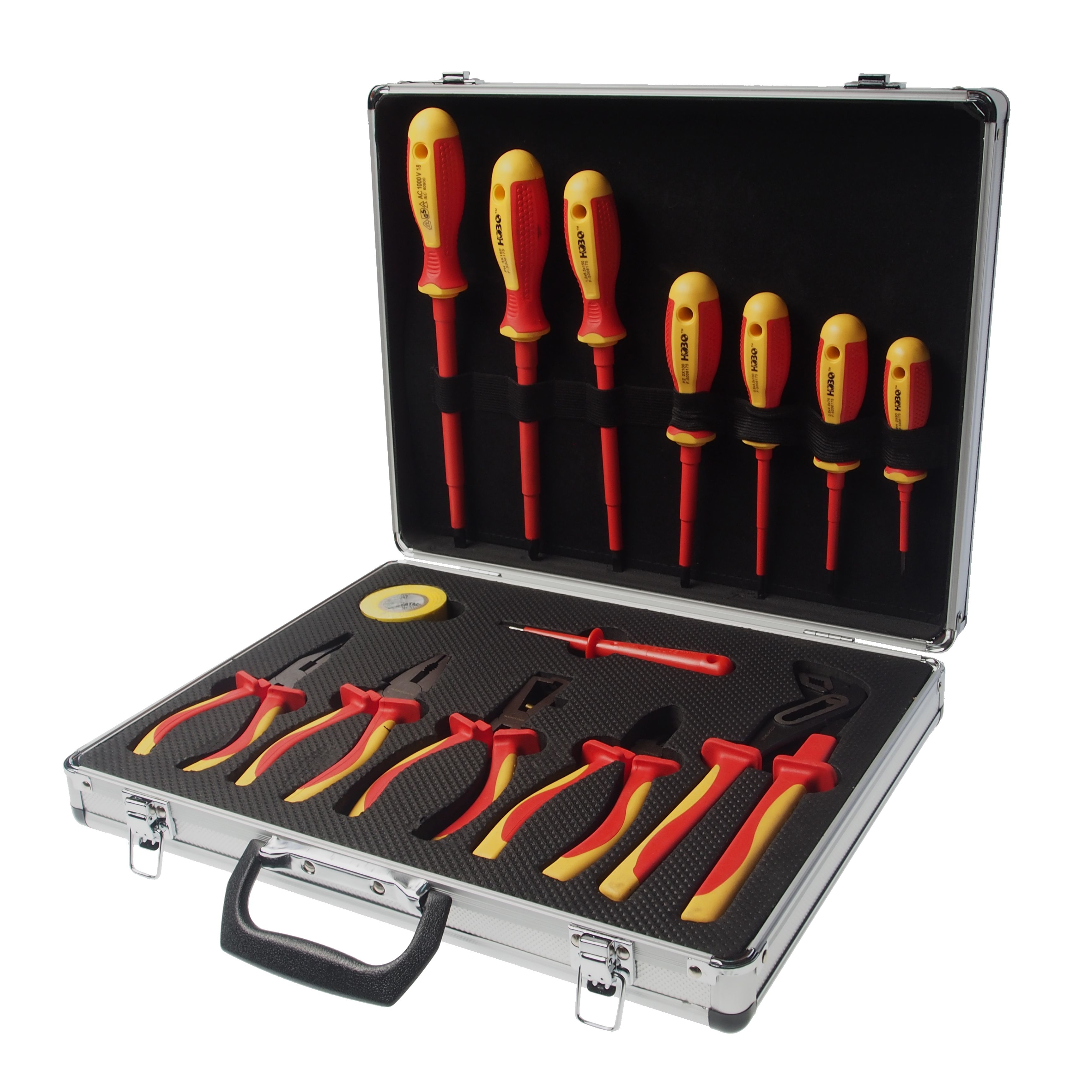 Набор RockForce инструмента диэлектрического 14 предметов в наборе Набор можно использовать при работе под напряжением. Включает в себя следующие инструменты: крестообразные и шлицевые отвертки, плоскогубцы, кусачки и индикатор напряжения. Стержни отверток выполнены из хром-ванадиевой стали и имеют высокую прочность. Губки инструментов кованые, сделаны из качественной хром-ванадиевой стали.