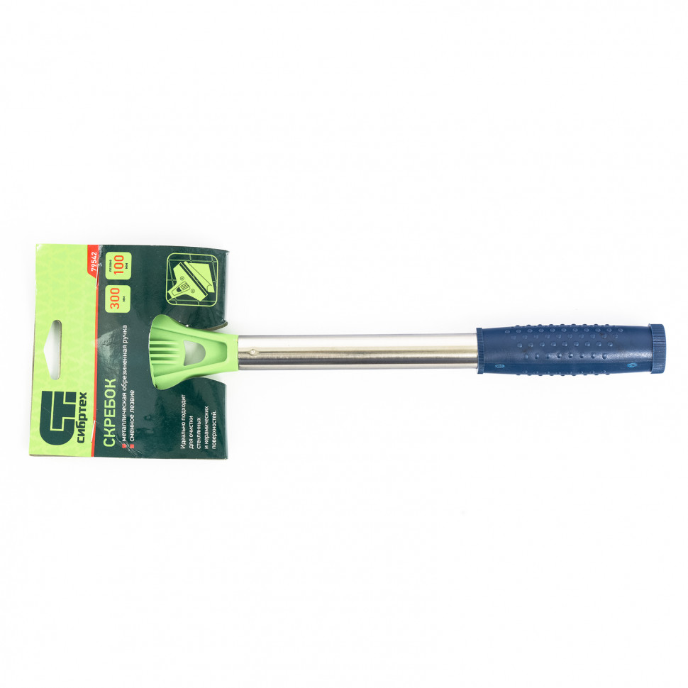 Скребок Сибртех 79542 длиной 300 мм, с фиксированным лезвием шириной 100 мм, с металлической обрезиненной ручкой, имеет двустороннее лезвие, острой стороной которого удобно счищать старую краску, монтажную пену, наклейки и другие загрязнения. Тупой стороной лезвия скребок эффективно удаляет остатки строительных смесей, цемента и шпаклевки. Инструмент можно использовать для плитки, стеклянных и керамических поверхностей. Он имеет сменное полотно и рассчитан на длительное использование. Скребок пригодится во время ремонта, а также будет полезен в быту.ПреимуществаСкребок с металлическим лезвием из углеродистой стали обладает высоким рабочим ресурсом.Корпус скребка устойчив к механическим воздействиям.Съемная крышка, закрывающая лезвие, обеспечивает безопасность хранения и транспортировки инструмента.Лезвие надежно закреплено, поэтому не выпадет во время работы.Металлическая ручка повышает надежность скребка.Ручка имеет прорезиненное покрытие, поэтому не выскальзывает из руки.