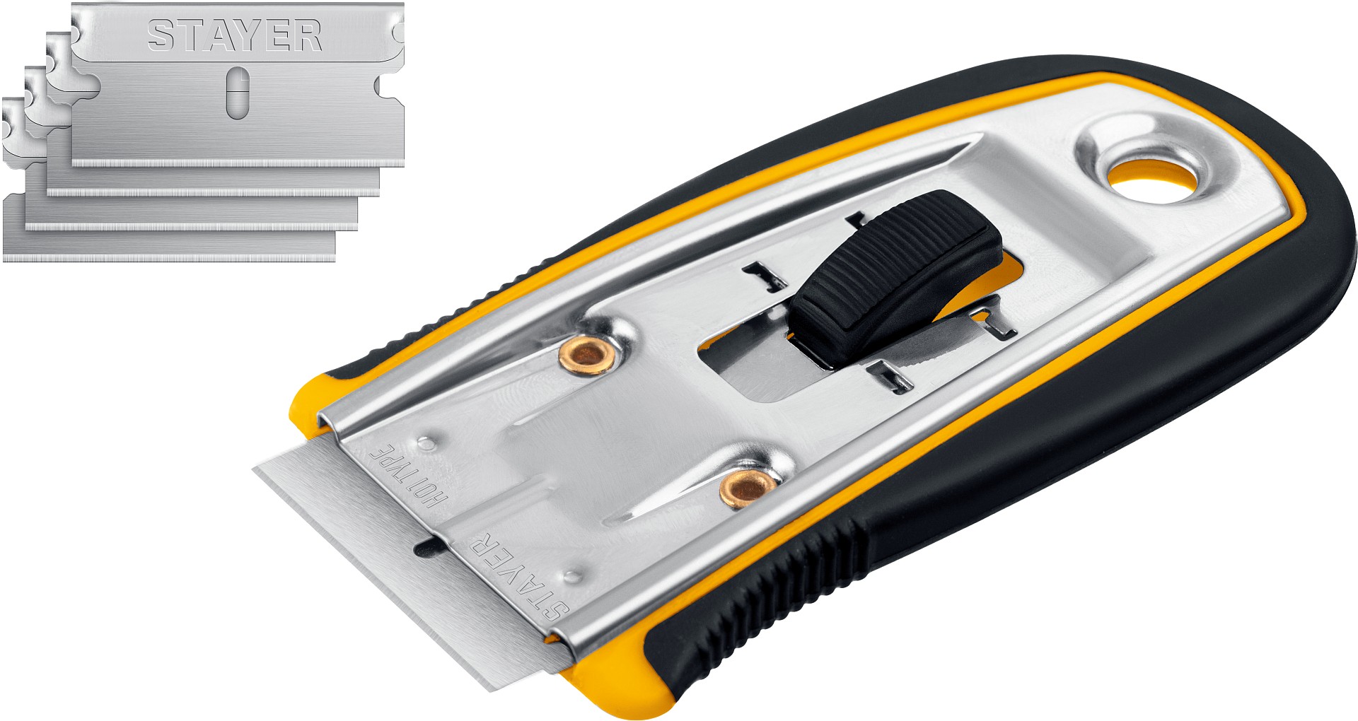 Скребок металлический для зачистки поверхностей от различных загрязнений с комплектом запасных лезвий