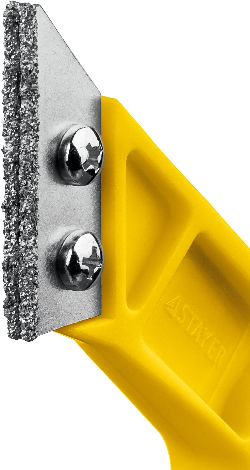 Скребок STAYER серии PROFESSIONAL - надежный и проверенный инструмент высокого качества. Применяется для зачистки швов уложенной кафельной плитки от излишков засохшего раствора, краски и различных загрязнений.