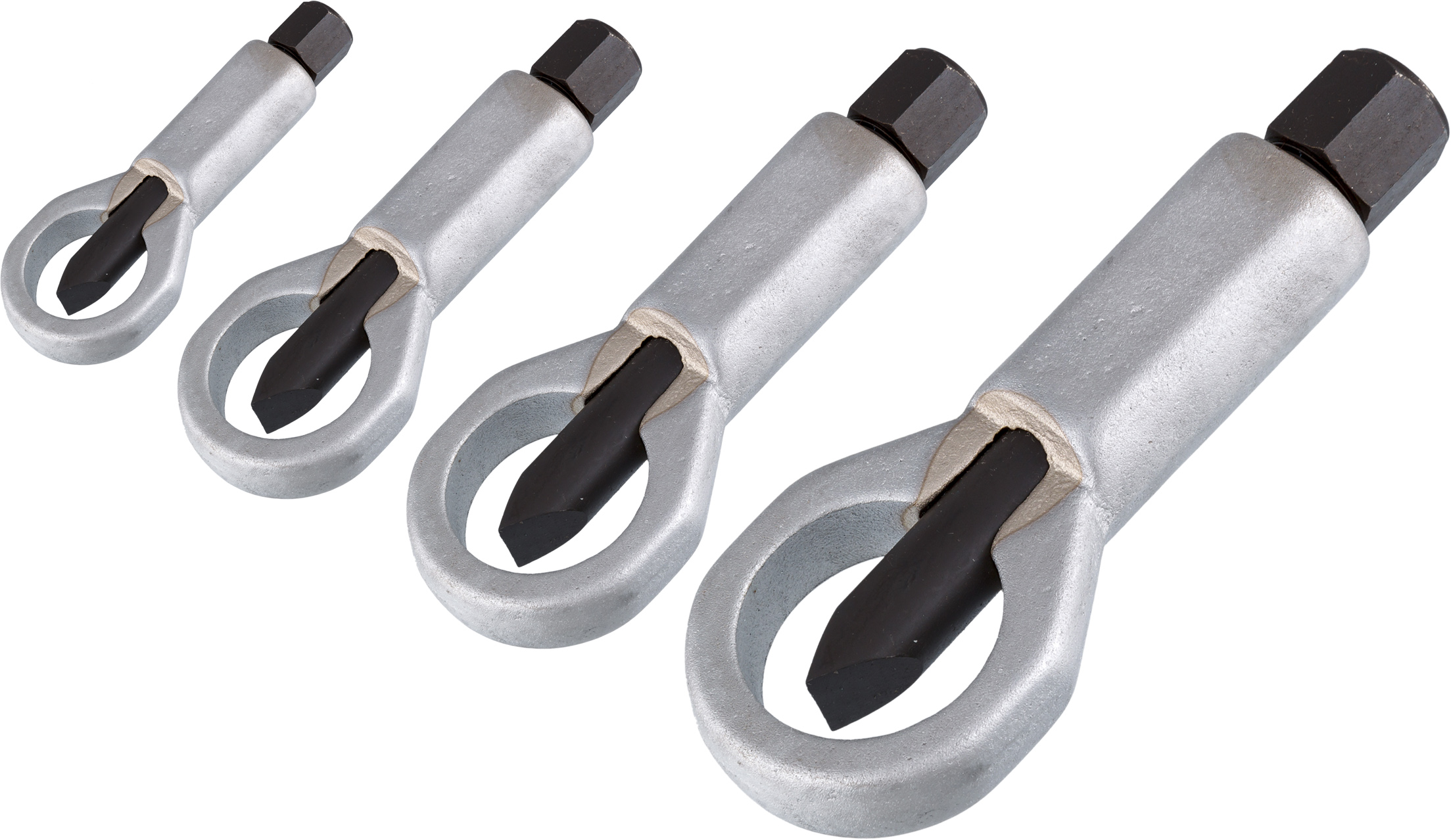 Подходит для удаления поврежденных или «прикипевших» гаек, которые невозможно открутить гаечным ключом или торцевой головкой.
