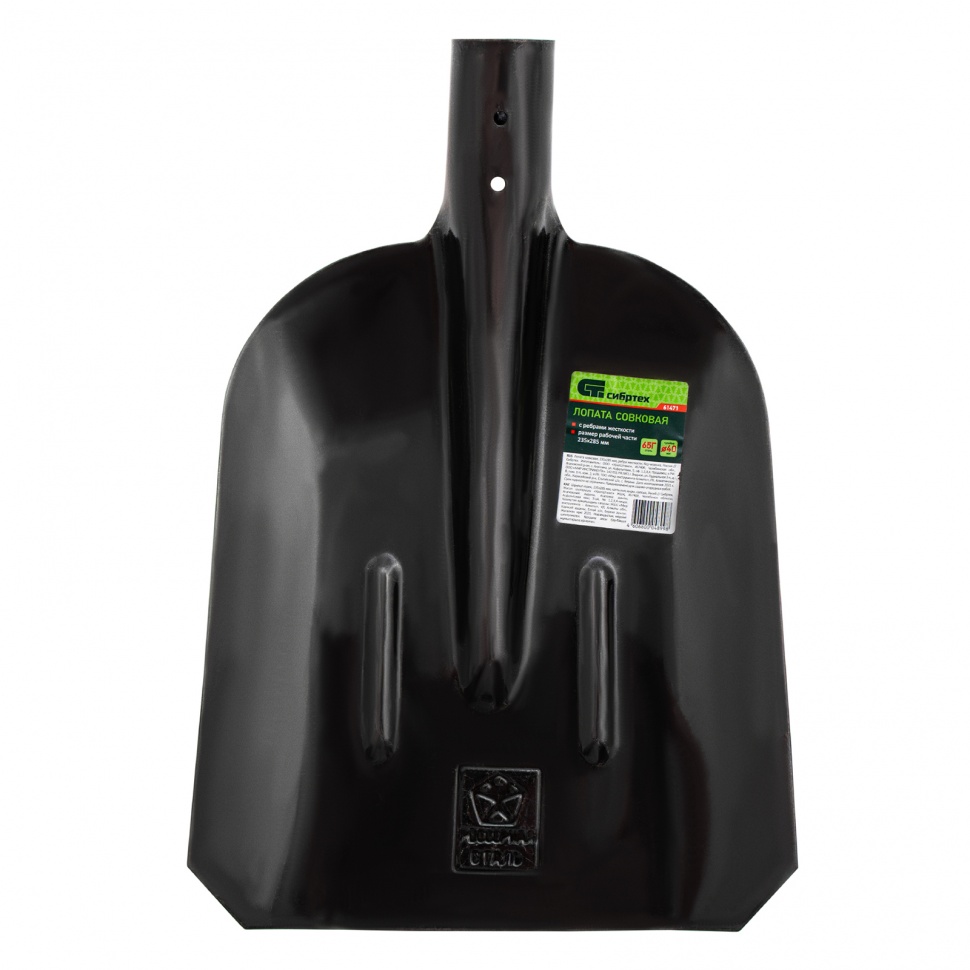 Совковая лопата Сибртех 61471 размером 235 х 285 мм, с ребрами жесткости, без черенка, используется для работы с грунтом, сыпучими материалами и строительными растворами. С поставленными задачами лопата успешно справляется благодаря широкой рабочей части, загнутым бортам, а также цельновырубной тулейке, повышающей прочностные характеристики. Лопата устанавливается на черенок диаметром 40 мм, рекомендуемые артикулы — 68441, 68400, 68451, 68422. Преимущества Прочность и упругость — полотно изготовлено из рессорно-пружинной стали толщиной 1,5 мм и закалено. Защита от разрушения — лаковое покрытие предохраняет инструмент от коррозии, механических повреждений и химических воздействий. Деформационная стойкость — полотно усилено ребрами жесткости.
