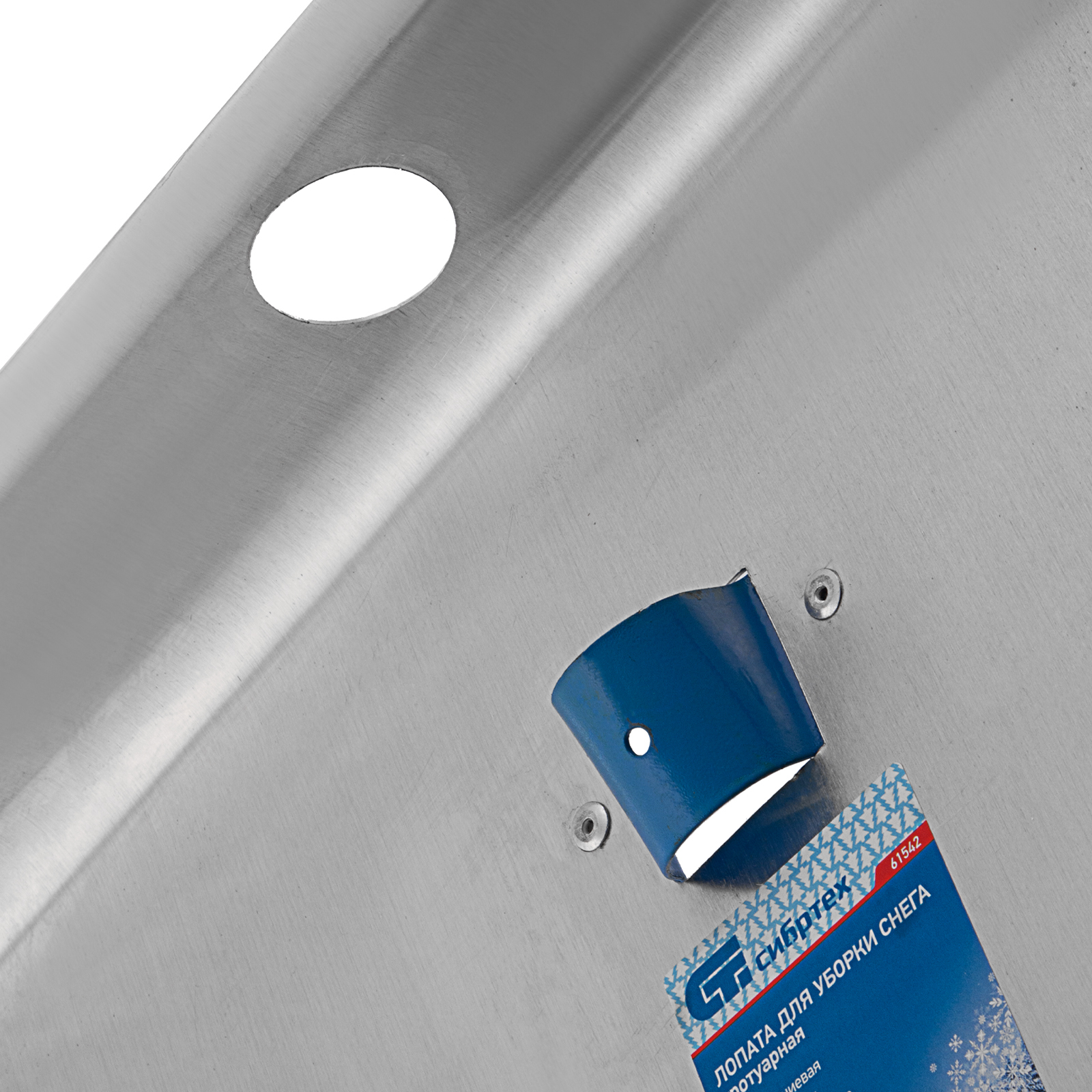 Алюминиевая тротуарная лопата Сибртех 61542 размером 500 х 400 мм, без черенка, подходит для расчистки тротуаров и уборки снега. Она используется совместно с черенками диаметром 40 мм. Увеличенная толщина полотна 1,5 мм и стальная накладка придают ковшу устойчивость к интенсивным нагрузкам, поэтому лопата эффективно справляется с настом и крупными комьями снега.ПреимуществаАлюминиевый ковш не подвержен коррозии, это обеспечивает надежность и долговечность лопаты.Лопата эффективна при уборке снега в любую погоду (до -60 °С).Гладкая поверхность ковша облегчает работу, позволяя быстро сбрасывать снег.Черенок крепится к тулейке на саморезы для надежности фиксации.