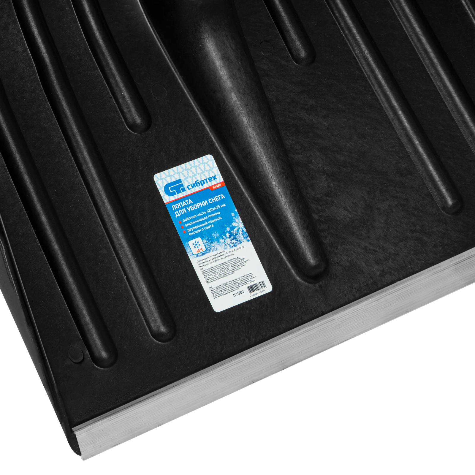 Пластиковая лопата Сибртех 61580 размером 420 х 425 х 1550 мм, с деревянным черенком, позволяет облегчить уборку снега. С ее помощью можно очистить дорожки в загородном доме, выезд из гаража и т.д. С лопатой весом 1,58 кг можно долго работать без усталости. А за счет длины 1550 мм с ней комфортно работать, т.к. снижается нагрузка на спину.ПреимуществаКовш выполнен из ударопрочного полипропилена, который выдерживает морозы до -30 °С.Кромка ковша оснащена защитной накладкой из алюминиевого сплава, благодаря чему он защищен от повреждений и износа, а также справляется с очисткой слежавшегося снега и наста.Дополнительные ребра жесткости повышают устойчивость ковша к нагрузкам.Высокую эффективность и скорость работы обеспечивает углубленный ковш, вмещающий большое количество снега.Рабочая часть оснащена высокими бортиками, поэтому снег не вываливается во время работы.Черенок изготовлен из древесины высшего сорта, поэтому прослужит долго.Деревянный черенок удобно лежит в руке и не проскальзывает.
