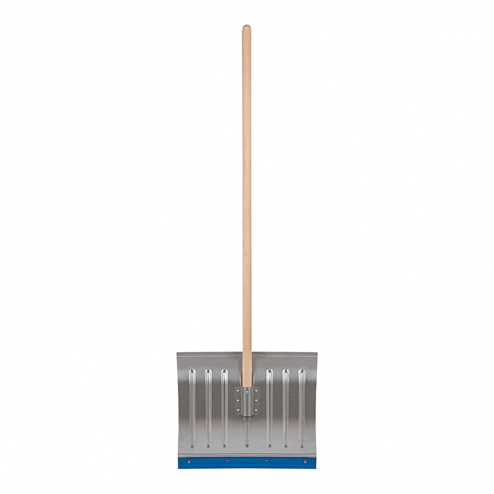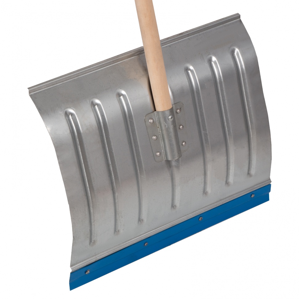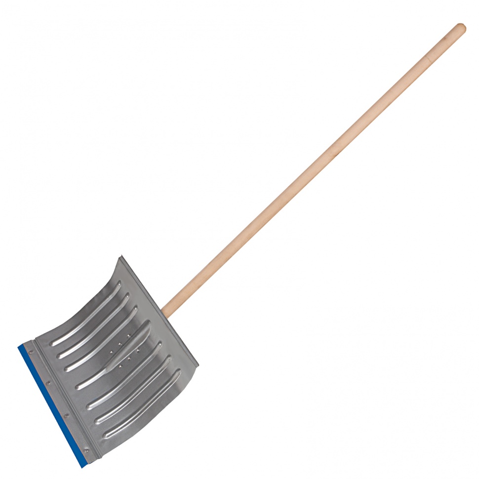Алюминиевая лопата для уборки снега Сибртех 61582 с деревянным черенком, 430 х 370 х 1350 мм, — ручной инструмент, которым можно освободить от снежных заносов тротуар, садовые дорожки, подъездные пути к дому или гаражу. Длинный черенок позволяет работать, не нагружая позвоночник. Инструмент устойчив к низким температурам и выдерживает мороз до -60 градусов.ПреимуществаРебра жесткости принимают на себя основную нагрузку, защищая ковш от повреждений при изгибающих нагрузках.Защитная накладка на кромке ковша облегчает уборку слежавшегося снега и предотвращает изнашивание инструмента.Ковш из алюминиевого сплава и деревянная рукоятка не подвержены коррозии, поэтому лопата прослужит долго.Черенок крепится к тулейке саморезами, что обеспечивает высокую надежность соединения.