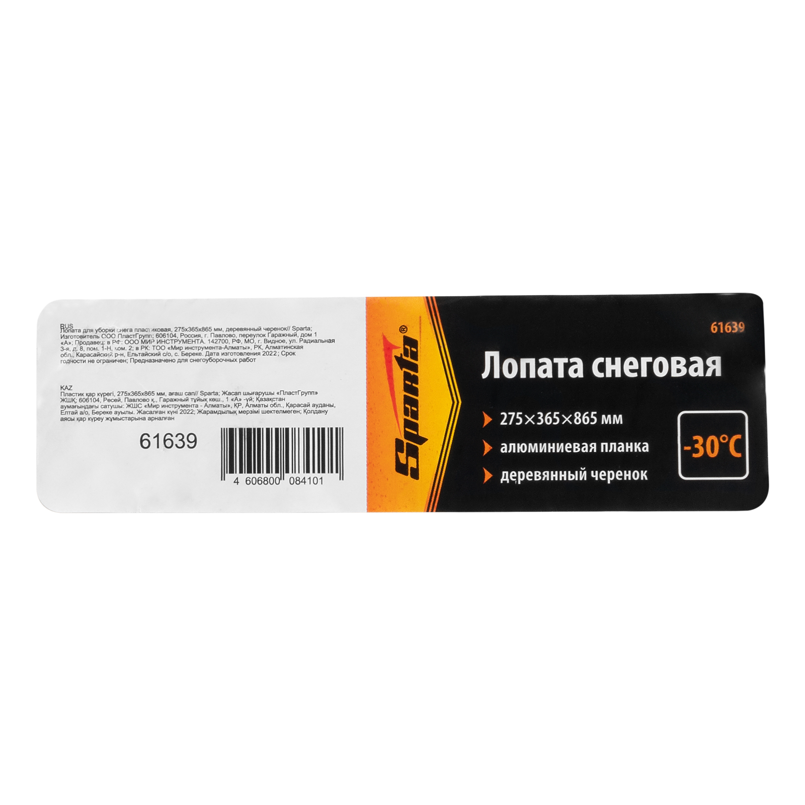 Лопата Sparta 61639 размером 275 х 365 х 865 мм, с пластиковым ковшом и деревянным черенком, — надежный помощник при уборке снега. Вместительный углубленный ковш значительно ускоряет уборку. Черенок позволяет снизить нагрузку на спину. Лопата пригодится владельцам дачных участков и гаражей.ПреимуществаМорозостойкость — рабочая часть из ударопрочного полипропилена выдерживает температуру до -30 ℃.Износостойкость — специальная алюминиевая окантовка ковша защищает кромку от повреждений.Вместительность — высокие бортики помогают удерживать снег внутри ковша.Комфортная эксплуатация — инструмент весит 0,7 кг, дополнительная рукоятка обеспечивает удобный хват, что позволяет долго работать без ощущения усталости.Компактность — за счет небольших размеров лопата легко помещается в багажник, ее удобно брать с собой.