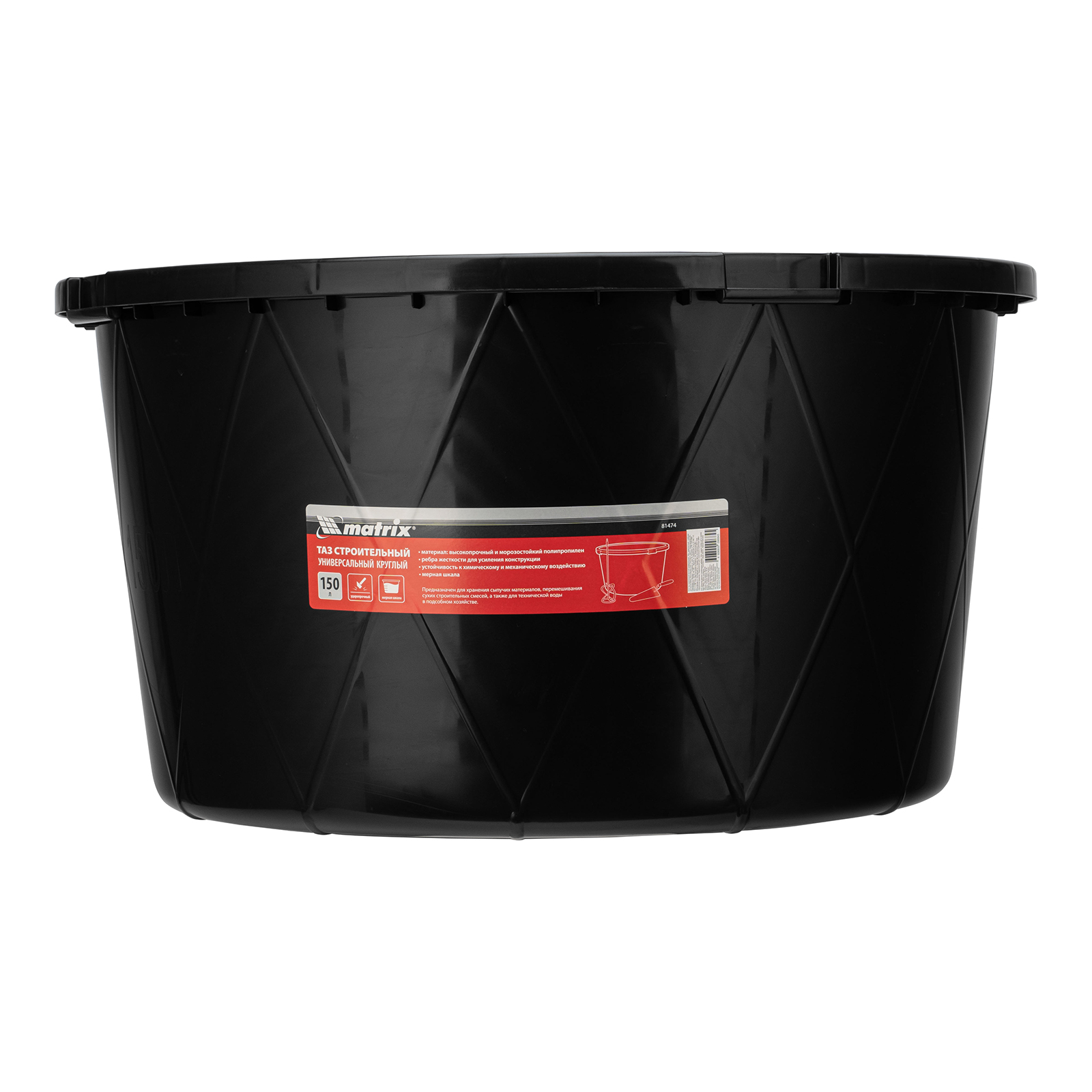 Круглый строительный ударопрочный таз Matrix 81474 с ребрами жесткости, объемом 150 л, универсален в применении: он используется для перемешивания строительных смесей, хранения сыпучих материалов и воды для технических нужд. Будет полезен во время проведения строительно-отделочных работ, пригодится также в подсобном хозяйстве и на огороде. Преимущества Оптимальное сочетание легкости, прочности и эластичности — таз изготовлен из высококачественного полипропилена, устойчивого к химическим и механическим воздействиям. Морозостойкость — изделие подходит для использования при низких температурах. Надежность — корпус усилен дополнительными ребрами жесткости. Контроль количества приготовляемого раствора — на внутренней стенке имеется мерная шкала. Удобная транспортировка — усиленные ручки позволяют с легкостью перемещать даже наполненный таз.