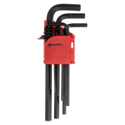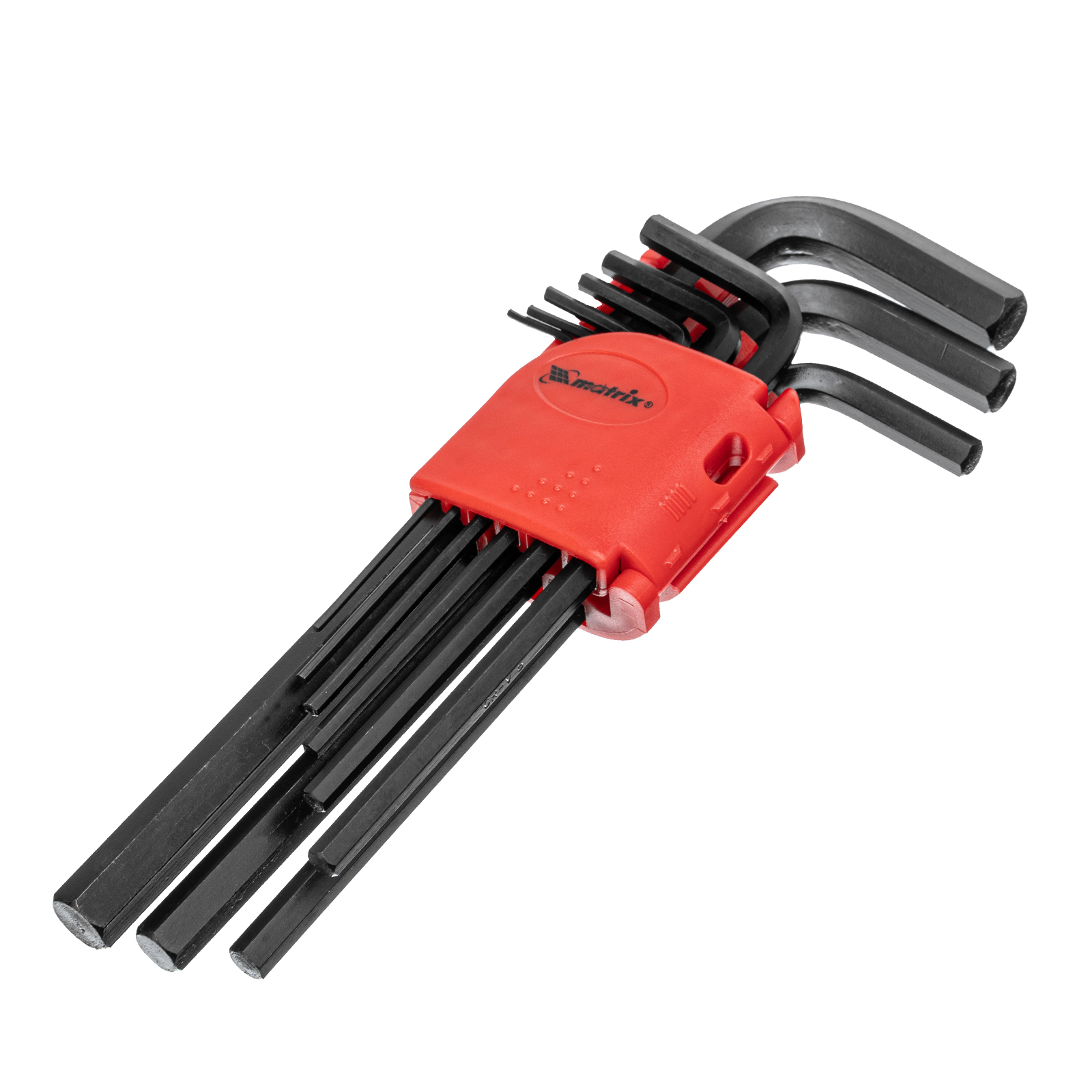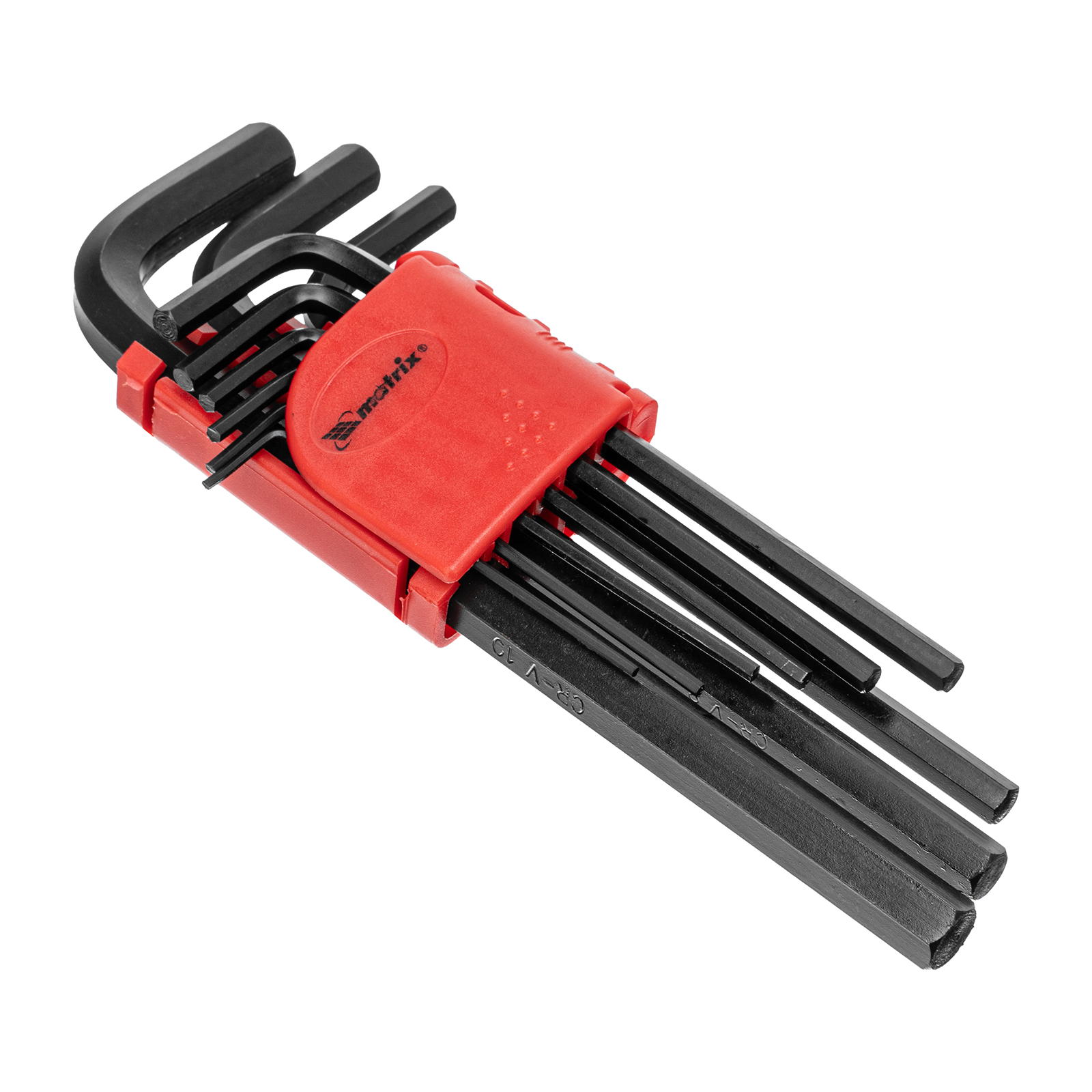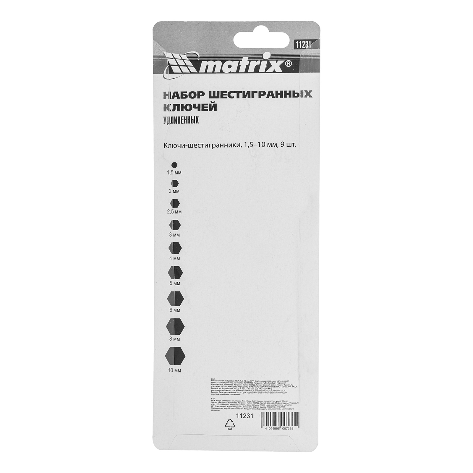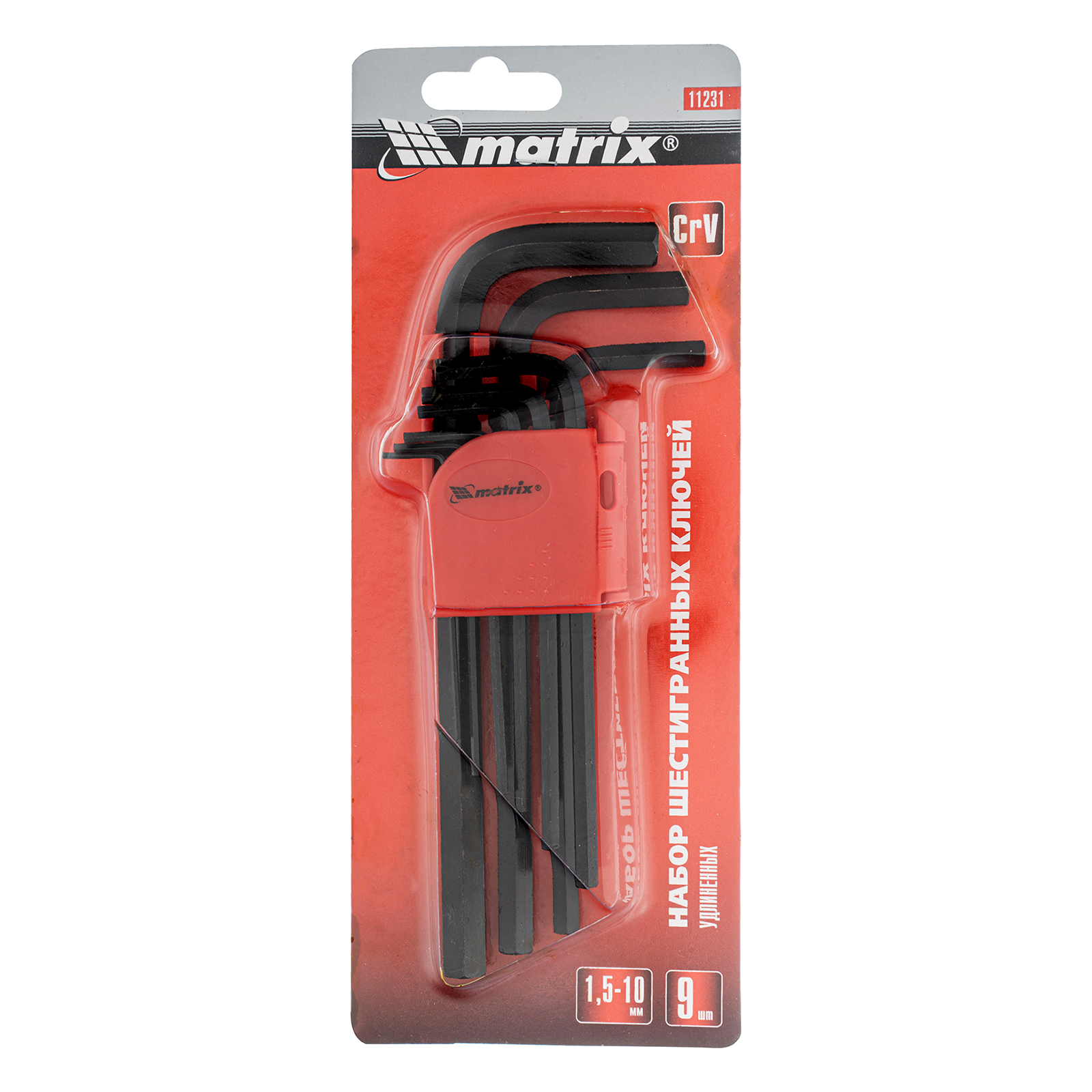 Набор Matrix 11231 из 9 удлиненных оксидированных имбусовых ключей размером 1,5-10 мм, из стали CrV, используется для монтажа и демонтажа крепежа со шлицем HEX. Шестигранники наиболее часто применяются для закручивания мебельных евровинтов и ремонта велосипедов. Удлиненные рабочие части обеспечивают удобный доступ в труднодоступные места.ПреимуществаВысокий ресурс — ключи изготовлены из прочной и износостойкой хромованадиевой стали.Коррозионная стойкость — оксидированное покрытие надежно защищает инструменты от разрушения.Универсальность — короткие части инструментов можно использовать для работы в ограниченном пространстве и в случаях, когда требуется приложить большое усилие.Продуманная комплектация — в набор входит удобный пластиковый держатель с отверстием для подвесного хранения.
