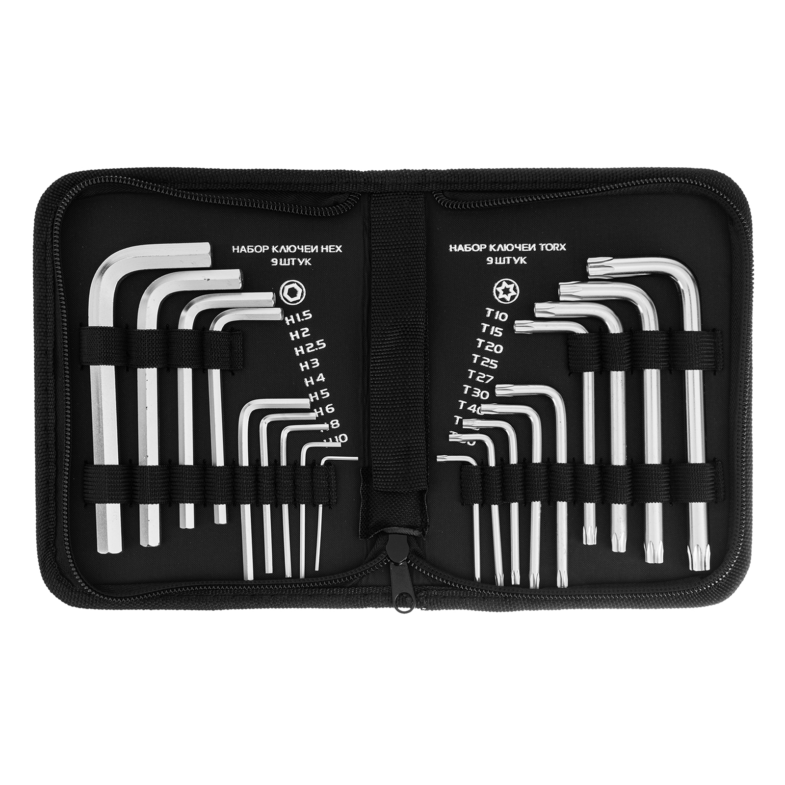 Набор Matrix 12314 включает 18 коротких сатинированных имбусовых ключей из стали CrV, применяющихся для монтажа и демонтажа резьбовых соединений с профилями HEX 1,5-10 мм и TORX Т10-Т50. Набор подходит для сборки мебели, ремонта велосипедов, бытовой техники и решения других задач. Две рабочие части и Г-образная форма облегчают работу в труднодоступных местах.ПреимуществаПрочность и долговечность — ключи из высококачественной стали CrV твердостью 50-55 HRC выдерживают длительное использование.Универсальность — набор включает 18 ключей с шестигранным и звездообразным профилем для работы с крепежом самых ходовых типоразмеров.Комфортная работа — сатинированные ключи с гладкой поверхностью без микронеровностей удобно ложатся в руку.Продуманное хранение и транспортировка — набор упакован в тканевый пенал на молнии.