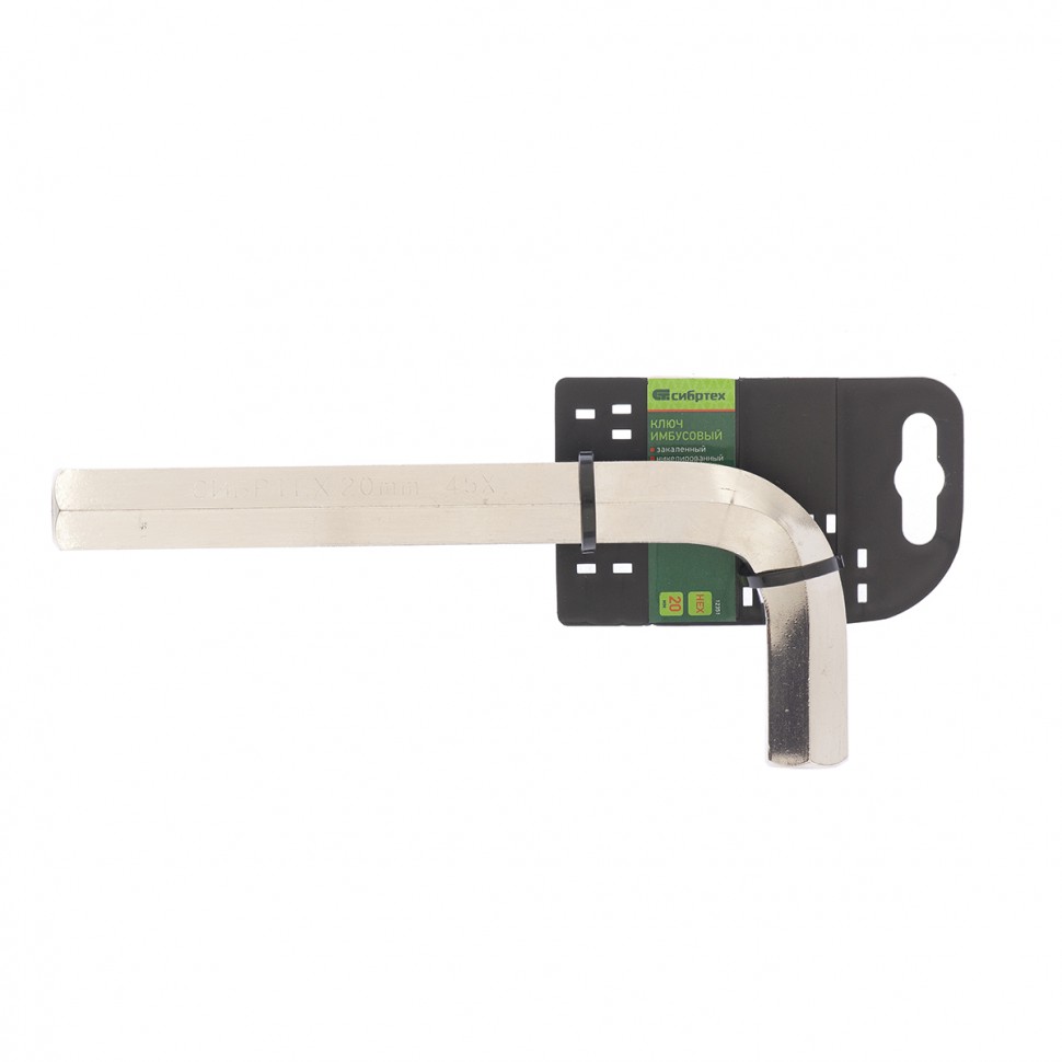 Ключ имбусовый никелированный Сибртех 12351 размером 20 мм, из закаленной стали 45Х, используется для монтажа и демонтажа резьбового крепежа с шестигранным шлицем HEX. Пригодится для сборки мебели, ремонта бытовой техники, велосипедов и автомобилей. Преимущества Прочность и долговечность — инструмент изготовлен из конструкционной легированной стали 45Х и никелирован для защиты от коррозии. Высокая износостойкость — твердость стали составляет 45 HRC. Удобная работа в ограниченном пространстве — Г-образная форма облегчает доступ к крепежу.
