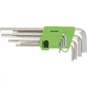 Набор удлиненных имбусовых ключей Сибртех 12318 из закаленной стали 45Х, покрытых никелем, 9 шт. в упаковке, используется для работы с евровинтами, имеющими шлиц HEX в виде внутреннего шестигранника. В комплекте 9 ключей размером от 1,5 до 10 мм, что обеспечивает широкие возможности применения набора. Он пригодится при сборке мебели, для ремонта велосипедов, установки и регулировки пластиковых окон. Преимущества Прочность и защита от коррозии — ключи изготовлены из высококачественной стали 45Х, закалены до твердости 45 HRC и никелированы. Удобная работа в труднодоступных местах — Г-образная форма облегчает закручивание и откручивание крепежа. Использование короткого конца в качестве рабочего — набор удобен для работы с большим усилием или в ограниченном пространстве. Продуманная упаковка — держатель-клипса из прочного пластика обеспечивает удобное хранение и быстрое извлечение инструментов.