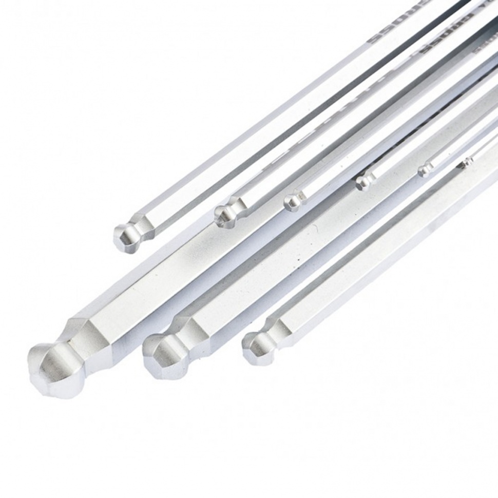 Набор Gross 16404 из стали S2 включает в себя 9 экстрадлинных сатинированных имбусовых ключей с шаром, предназначенных закручивания и откручивания крепежа со шлицами HEX 1,5-10 мм. Благодаря увеличенной длине и Г-образной форме инструменты удобны для работы в труднодоступных местах, позволяют экономить усилия при монтаже и демонтаже крепежа. Набор пригодится для сборки мебели, ремонта велосипедов и т.д. Преимущества Долговечность — ключи изготовлены из инструментальной легированной стали S2, сатинированное покрытие защищает от механических повреждений и коррозии. Деформационная стойкость — инструменты закалены до необходимой твердости 52-56 HRC. Удобная работа в ограниченном пространстве — шарообразный наконечник обеспечивает надежный контакт с крепежом. Четкая маркировка — лазерное обозначение размеров и торговой марки упрощает подбор ключей и не стирается со временем. Комфортная работа и удобное хранение — набор поставляется в пластиковом чехле с клипсой для крепления на поясе.