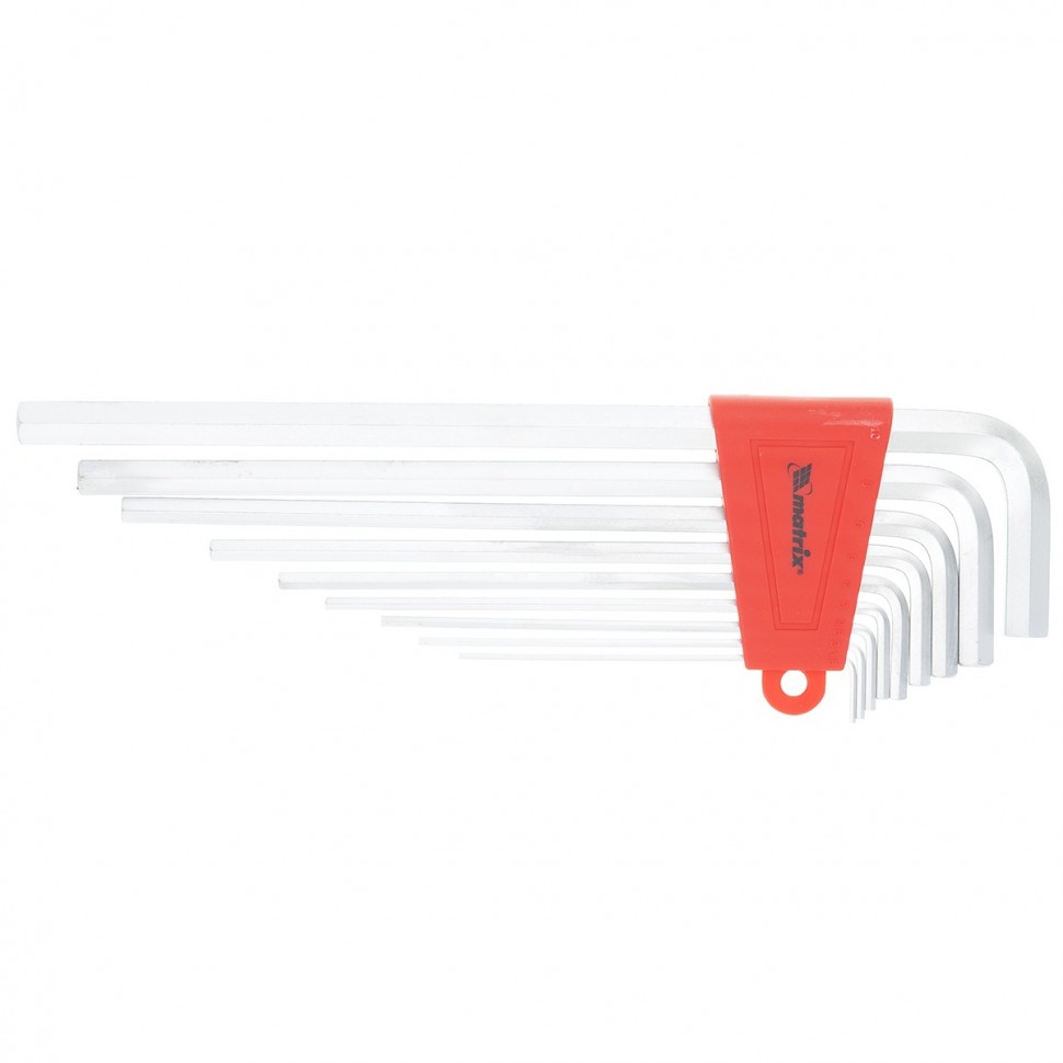 Набор Matrix 16409 включает 9 экстра-длинных имбусовых ключей с сатинированным покрытием, из стали CrV, и используется для работы с крепежными элементами со шлицем HEX 1,5-10 мм. Ключи пригодятся для ремонта велосипедов, монтажа мебельных евровинтов и решения других бытовых задач. Г-образные ключи позволяют прикладывать высокий крутящий момент, а экстра-длинный стержень удобен для работы в труднодоступных местах.ПреимуществаДолгий срок службы — ключи из прочной стали CrV твердостью 50-55 HRC устойчивы к высоким нагрузкам.Универсальность — в набор входит 9 ключей для работы с крепежом разного типоразмера.Удобный захват — ключи прошли сатинирование и имеют гладкую поверхность без микронеровностей.Продуманное хранение — ключи поставляются с пластиковым держателем с отверстием для подвешивания на гвоздь или крючок.