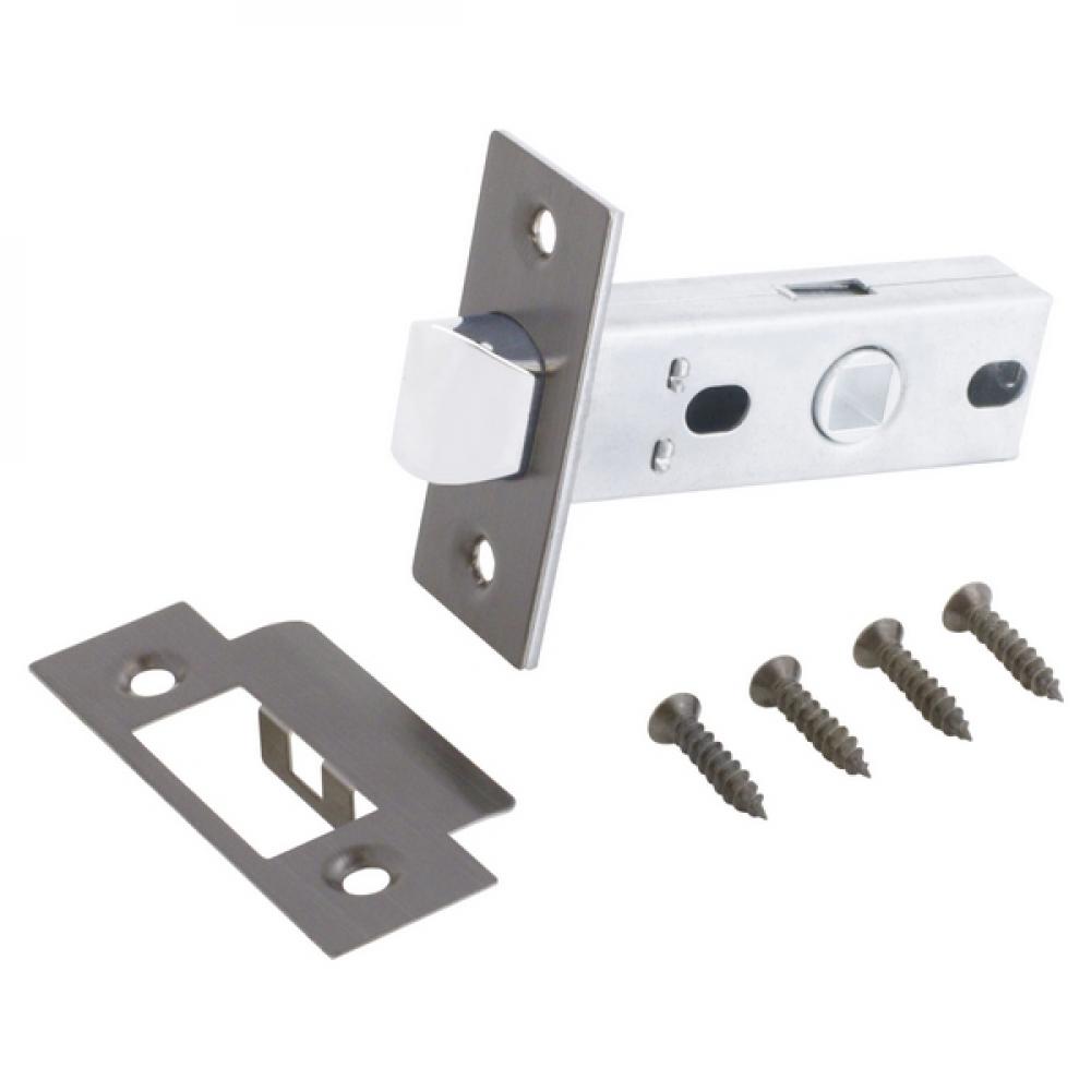Универсальная защёлка врезная для установки на деревянные межкомнатные двери. Материал - сталь оцинкованная штампованная, гальваническое покрытие. Под ручку с квадратом 8 мм. Удаление ключевого отверстия - 45 мм. Торцевая планка с защитной пленкой для сохранения покрытия. Ширина планки - 25мм. Габариты корпуса - 72.5х22х15 мм. В комплекте - защелка, ответная планка и белый пластиковый вкладыш к ней, саморезы.